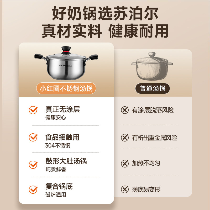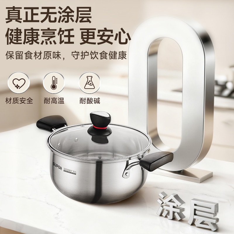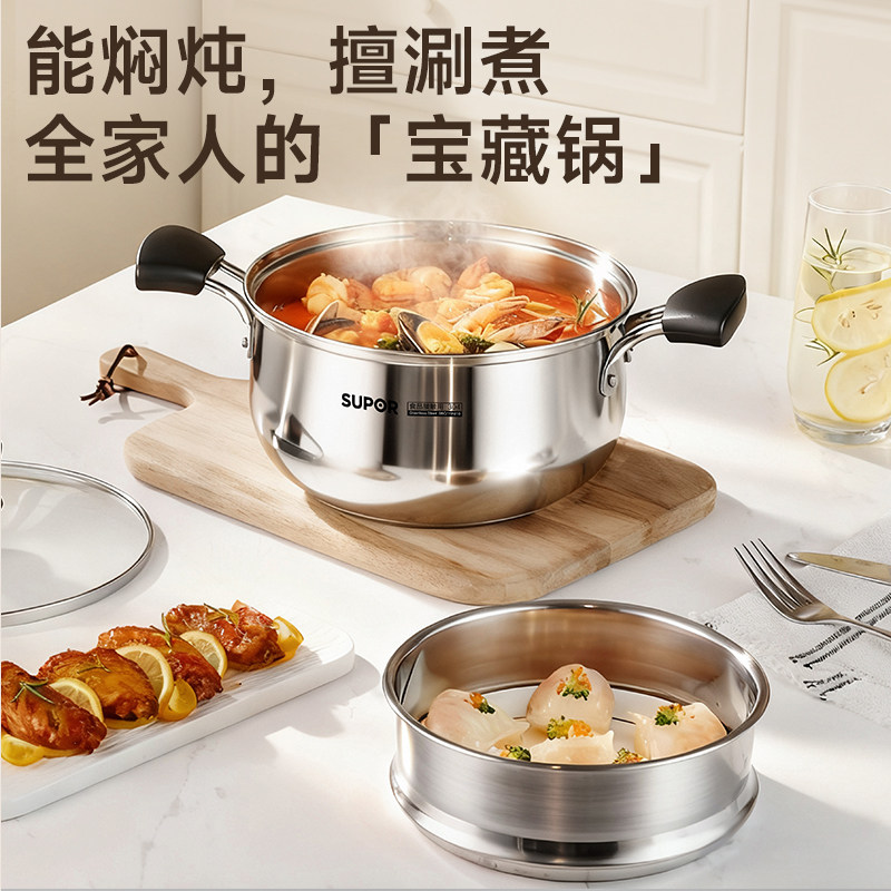 苏泊尔汤锅304不锈钢家用大容量蒸锅煮粥锅双耳火锅电磁炉炖锅