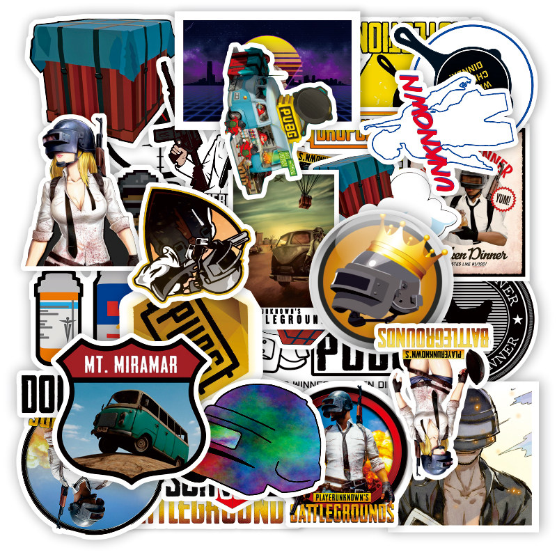 29张绝地求生吃鸡贴纸个性防水贴行李箱电脑装饰贴画防水笔记本滑板桌子摩托车汽车贴纸冰箱电视滑板贴纸男女