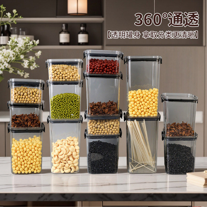 密封罐食品级储存收纳盒透明塑料厨房香料豆子坚果五谷杂粮储物罐