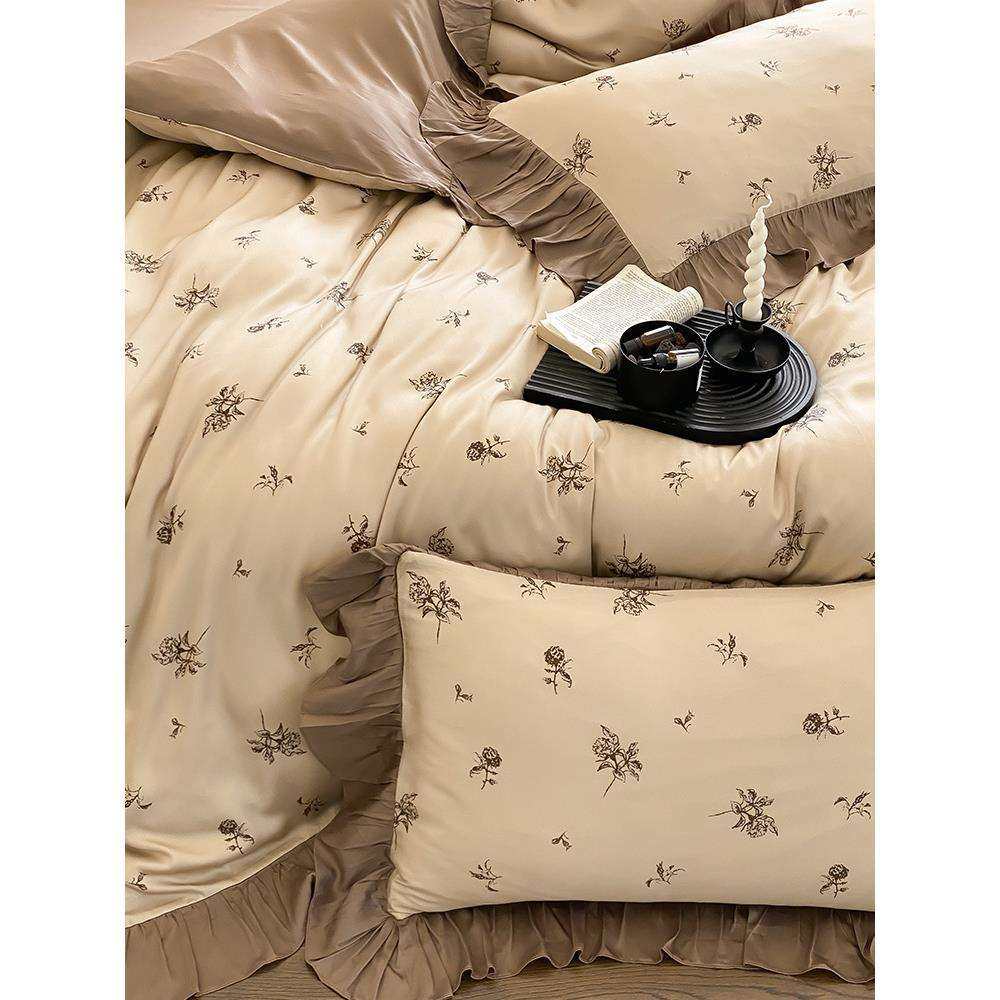 夏季清新花卉荷叶边100支天丝四件套凉爽丝滑双面凉感冰丝床品1.8