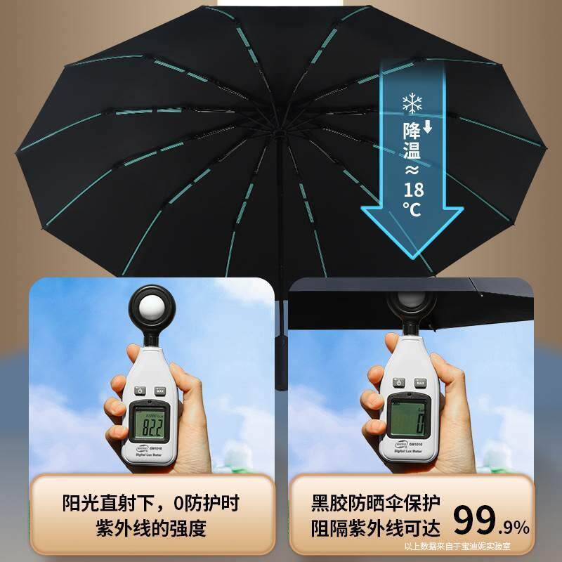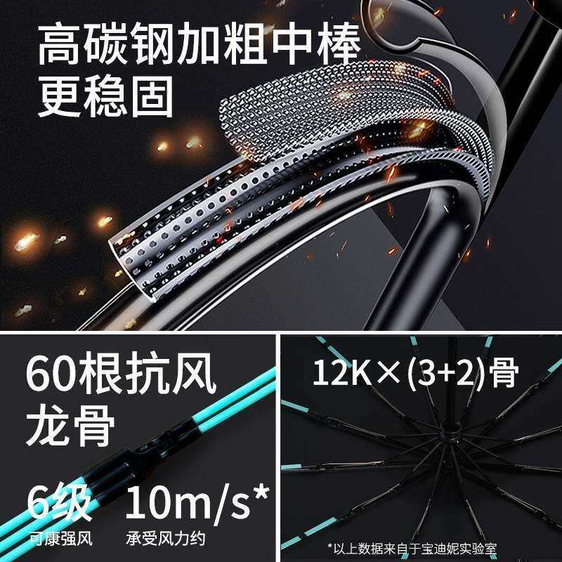 全自动黑胶雨伞加大加厚加固男女折叠太阳伞晴雨两用抗风暴超凌月