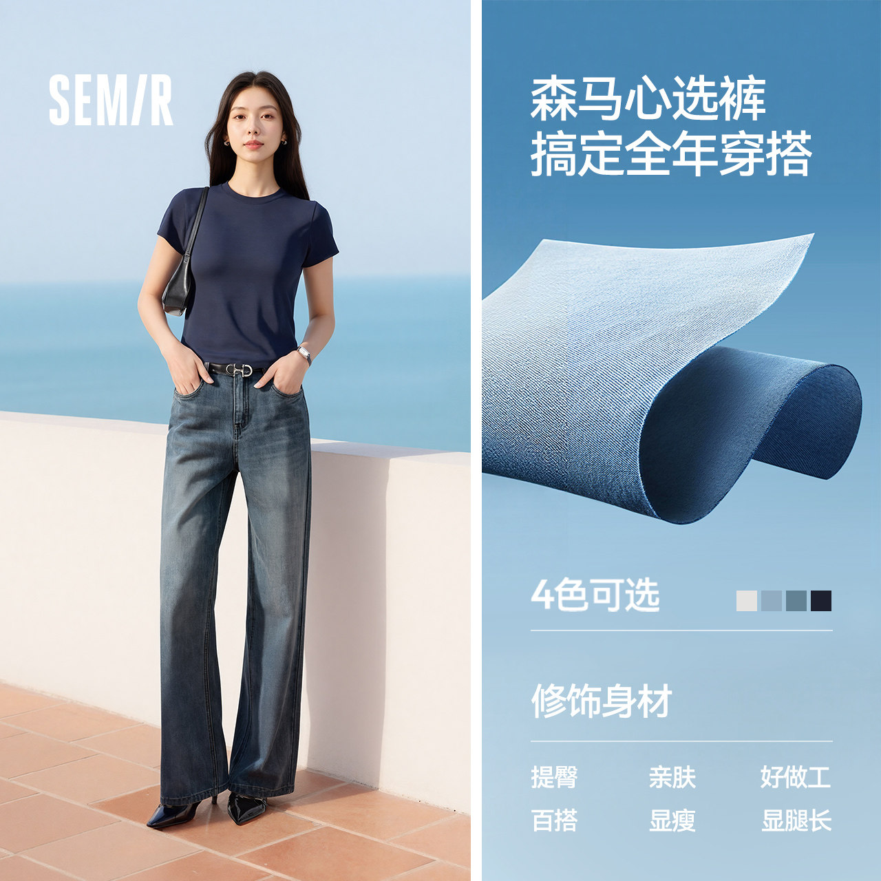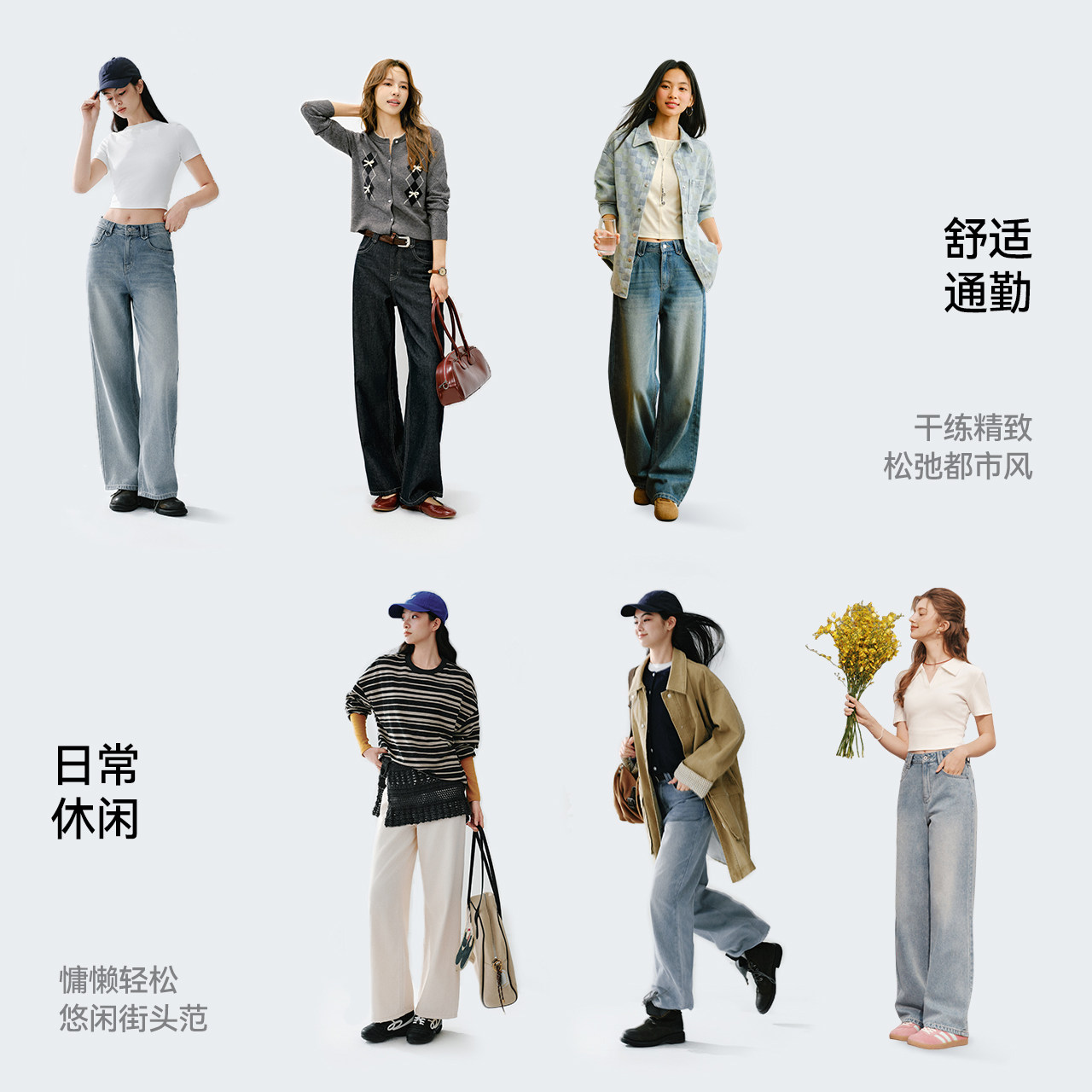 森柔|森马牛仔裤女春季做旧浅色长裤女生显瘦潮流简约时尚直筒裤