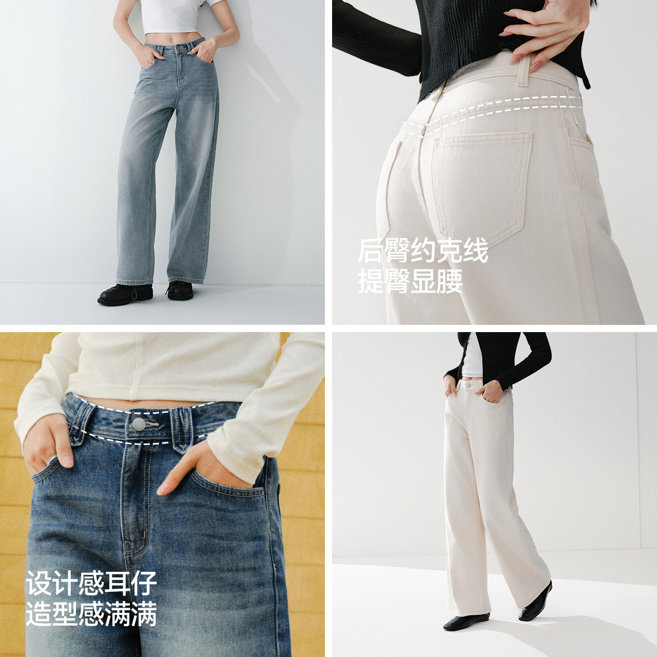 森柔牛仔|森马阔腿牛仔裤女2025秋冬白色牛仔裤简约女士高腰裤子
