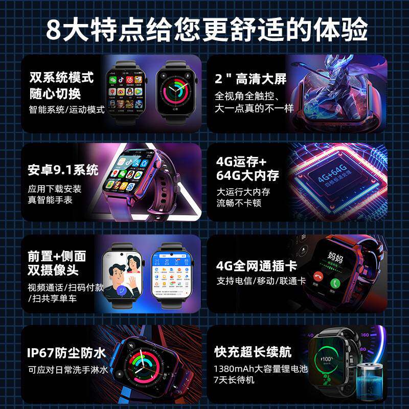 境专供】新款TK01智能手表全网4G插卡高清大屏电话玩游戏拍照饰品