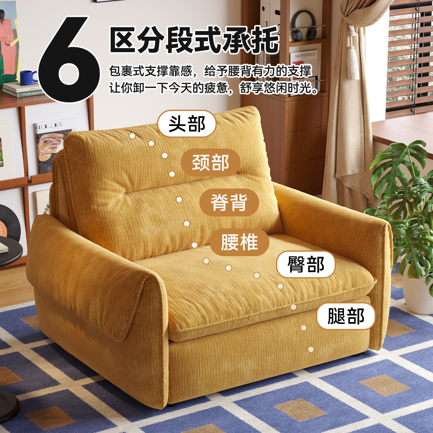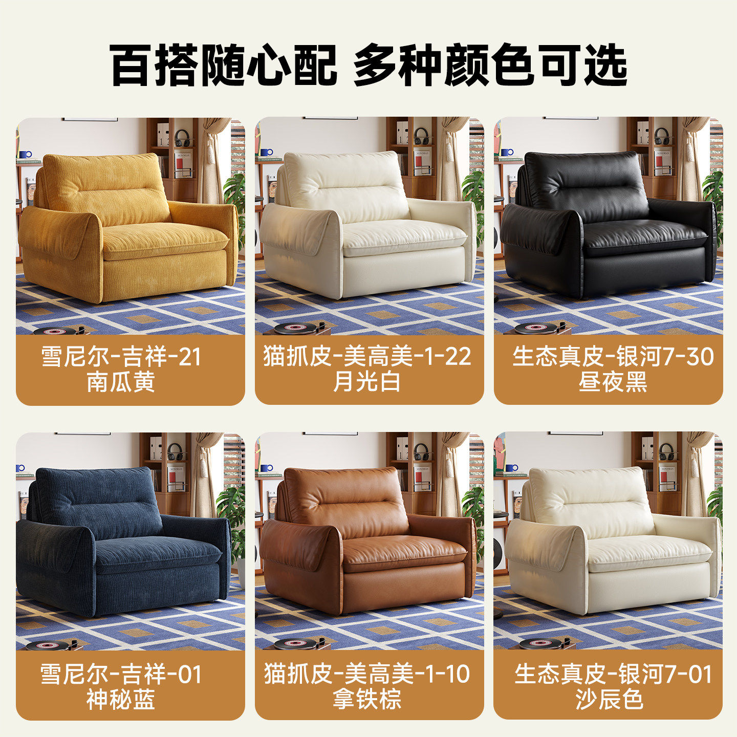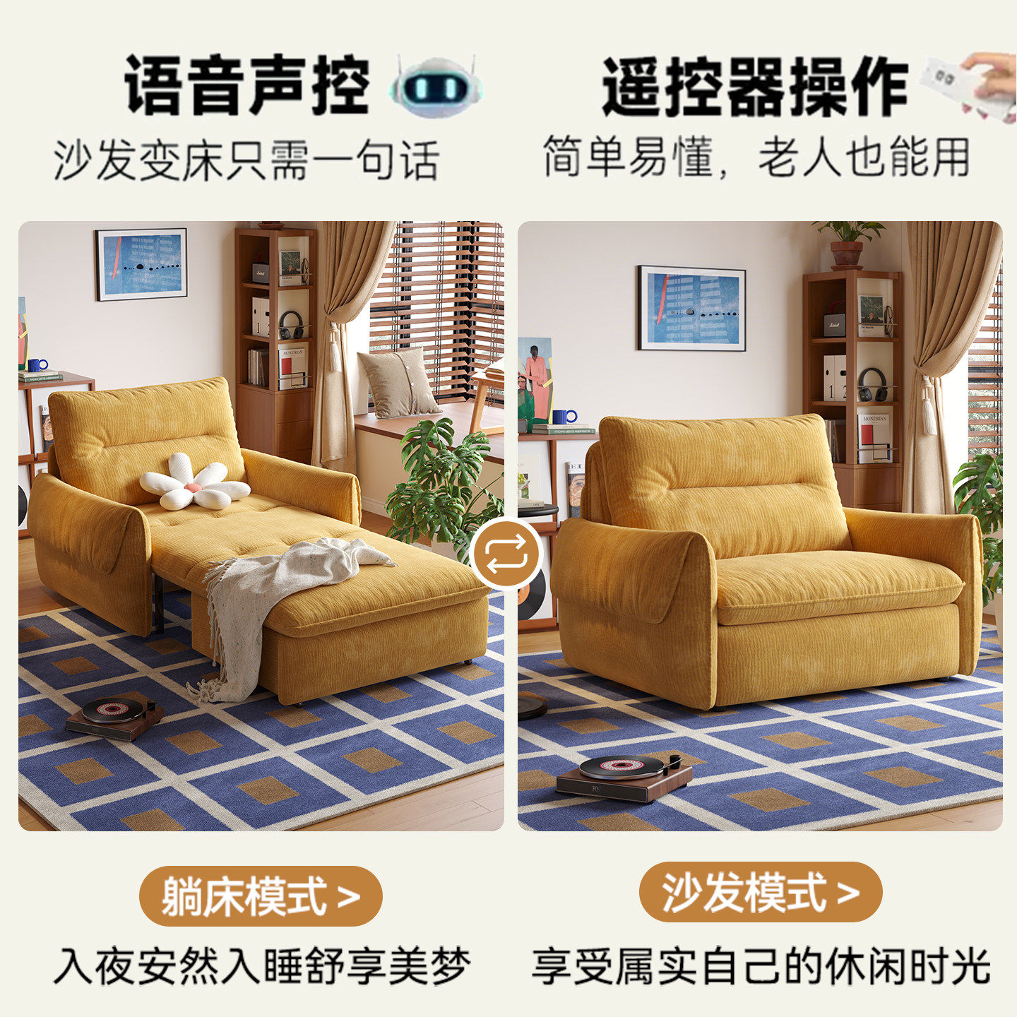 司朴复古风奶酪电动功能沙发床2026新款雪尼尔单人布艺沙发