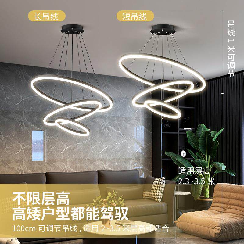 客厅吊灯现代简约灯饰中山轻奢北欧灯具创意圆环卧室吧台餐厅led