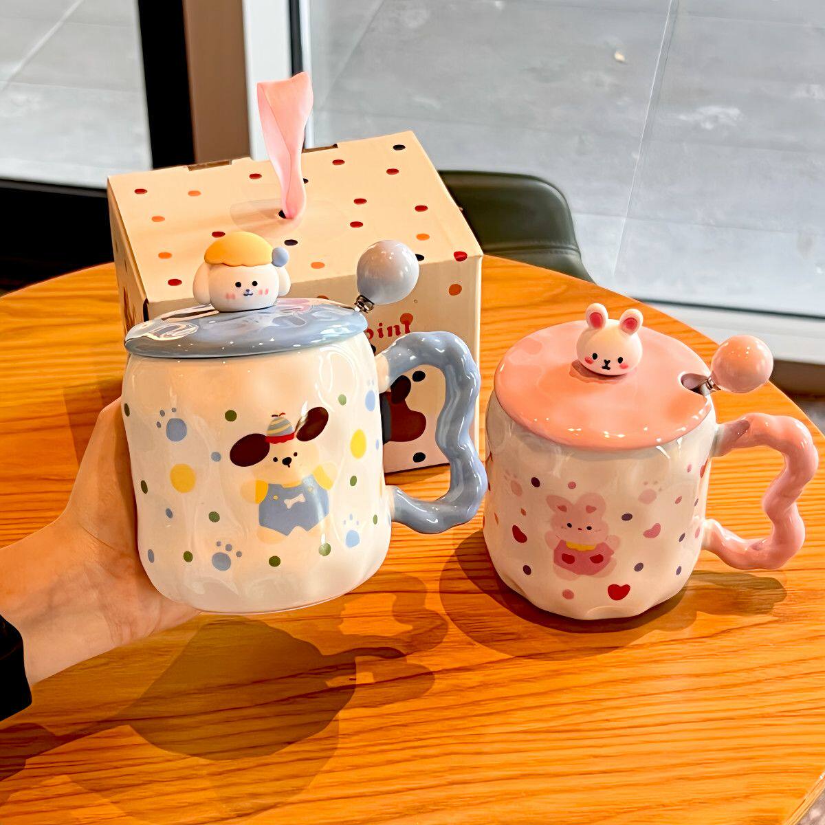 ins呆萌可爱小狗马克杯带盖勺高颜值陶瓷杯子情侣水杯女生日礼物
