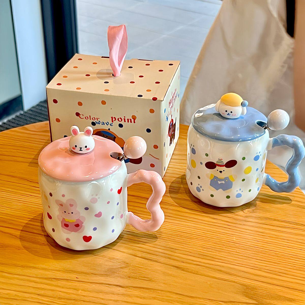 趣皿卡通陶瓷杯少女心马克杯可爱咖啡杯情侣水杯高颜值早餐牛奶杯