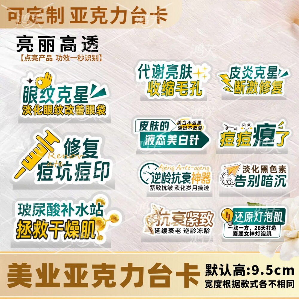 医美桌牌美容院摆台定制护肤产品功效项目介绍展示牌立牌亚克力水光美妆店广告牌促销牌氛围感立牌功效牌定做