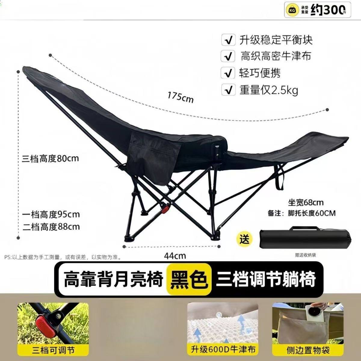 户外折叠椅加高月亮椅可调节躺椅露营椅子便携式沙滩钓鱼野餐椅子