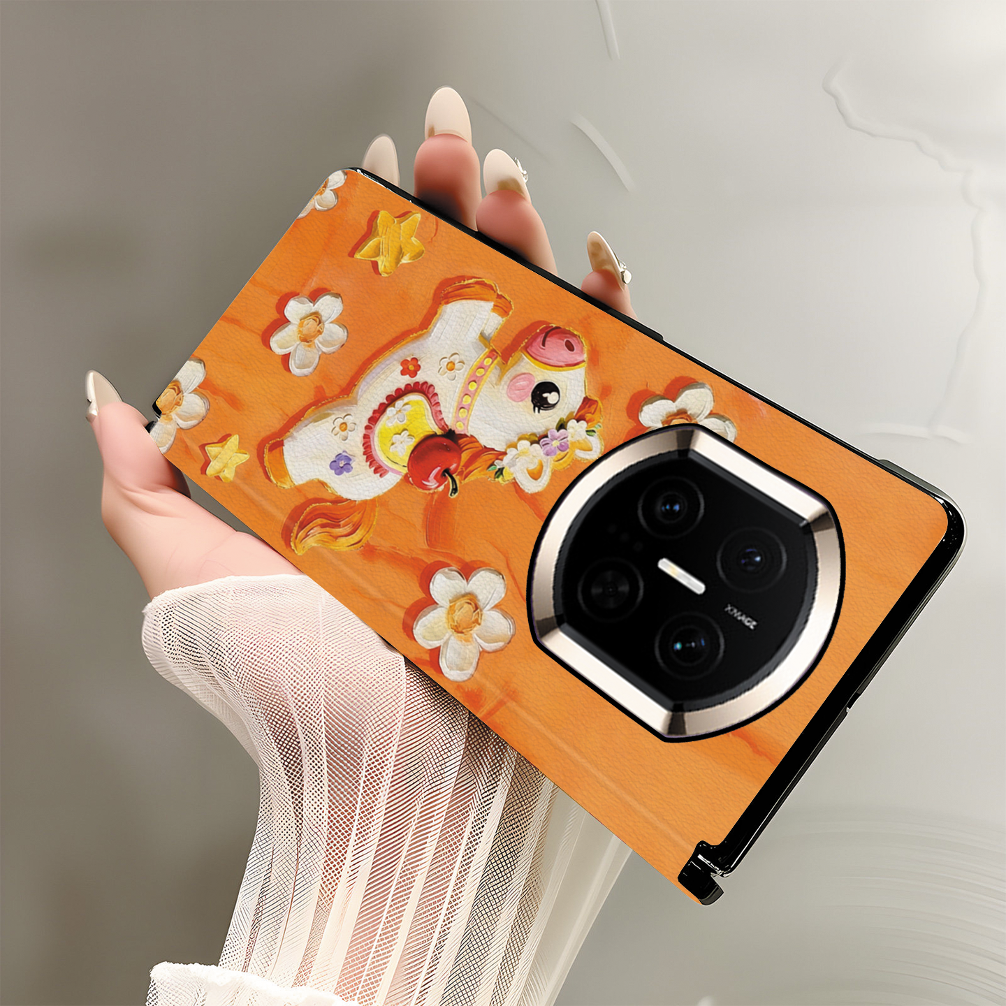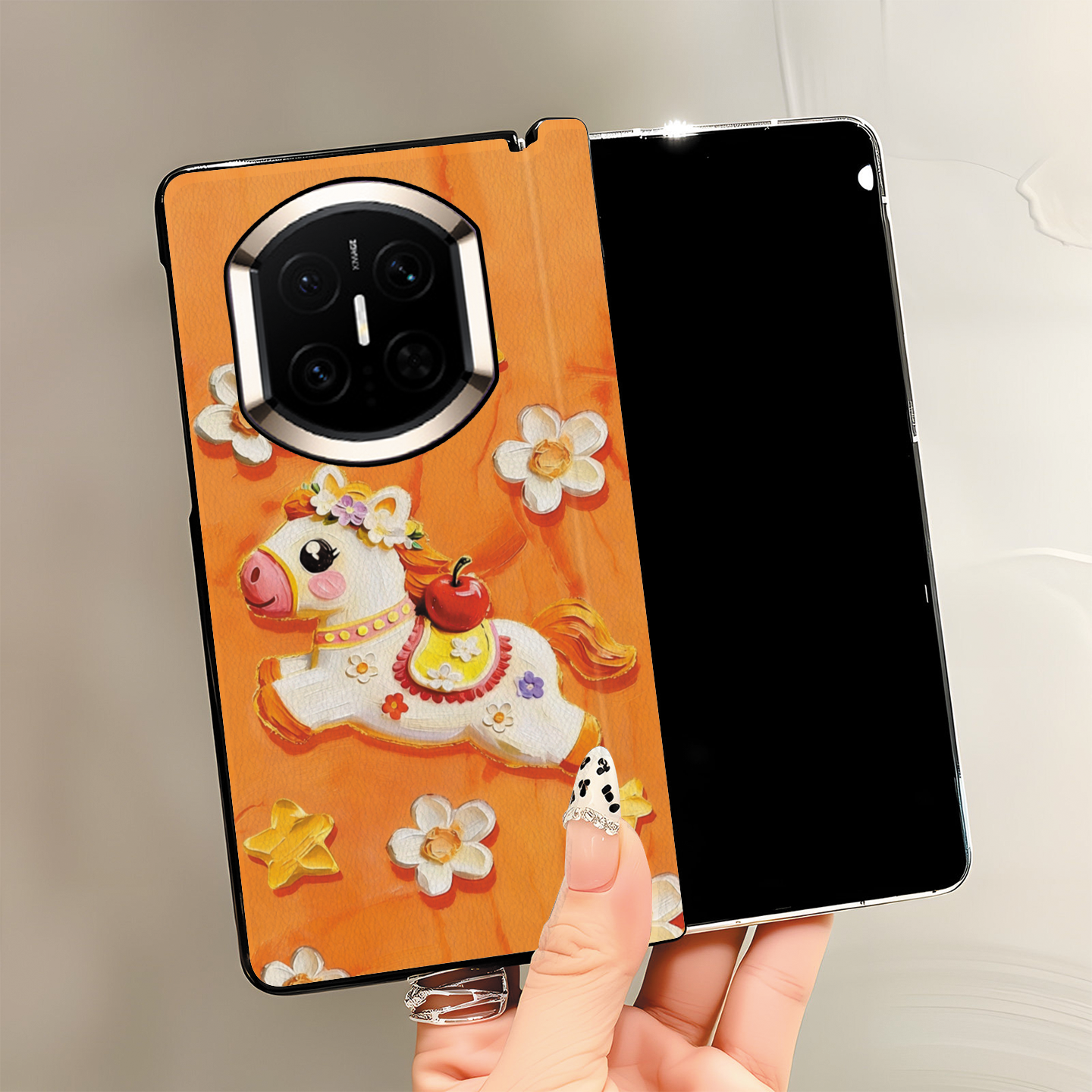 尾火虎适用华为matex7手机壳花朵小马可爱趣味卡通vivoxfold5/matex6典藏版/matex5/荣耀magicv5/三星zfold7