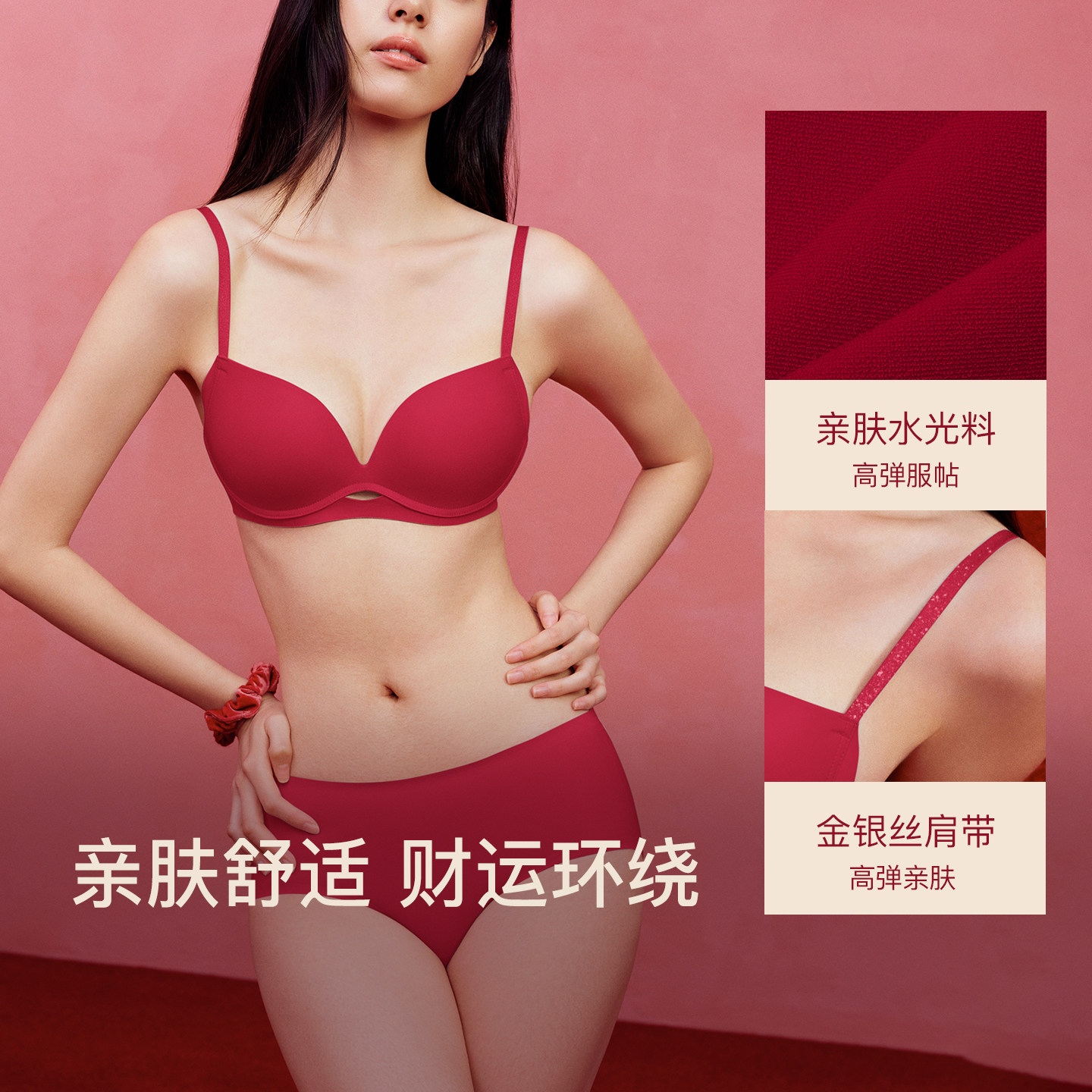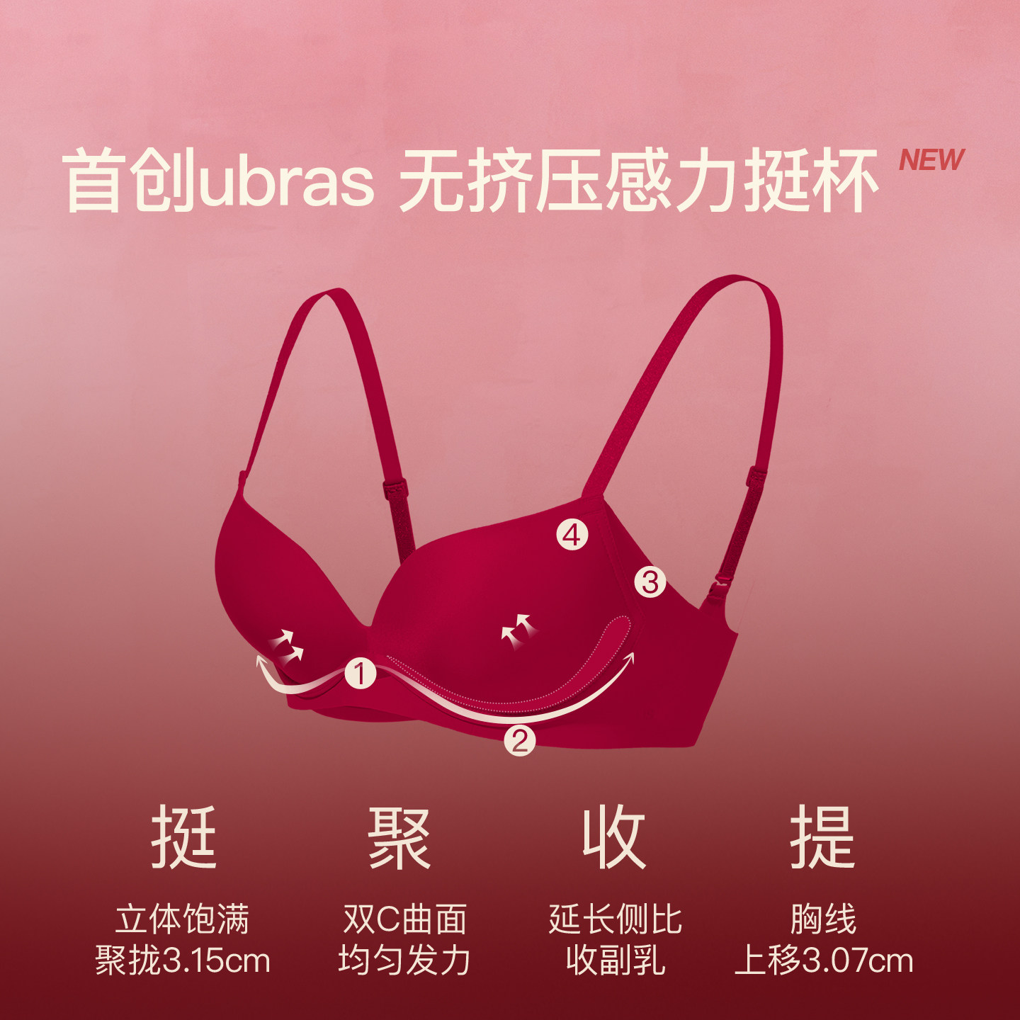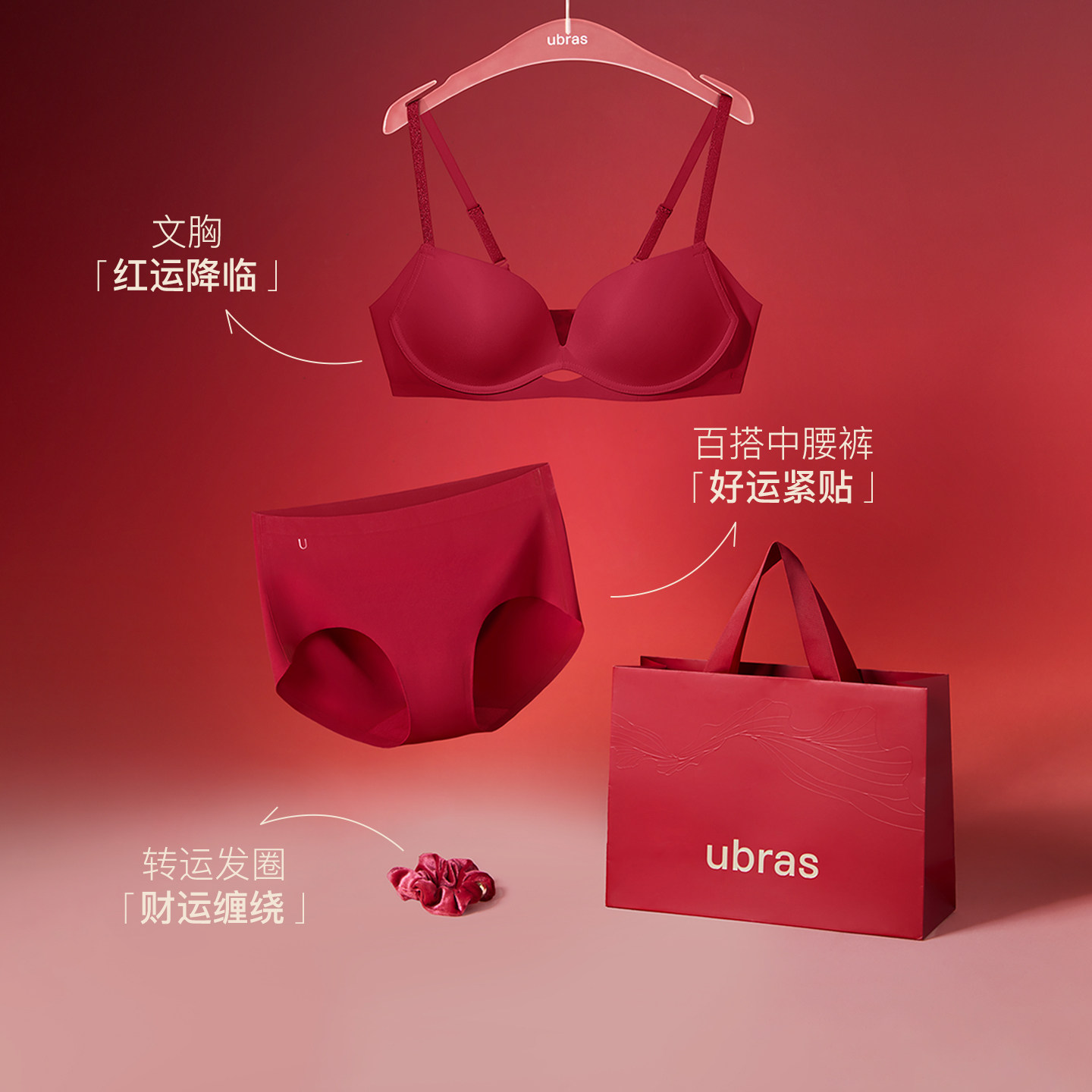 ubras力挺杯小胸聚拢无痕红色本命年送礼物结婚文胸内衣套装