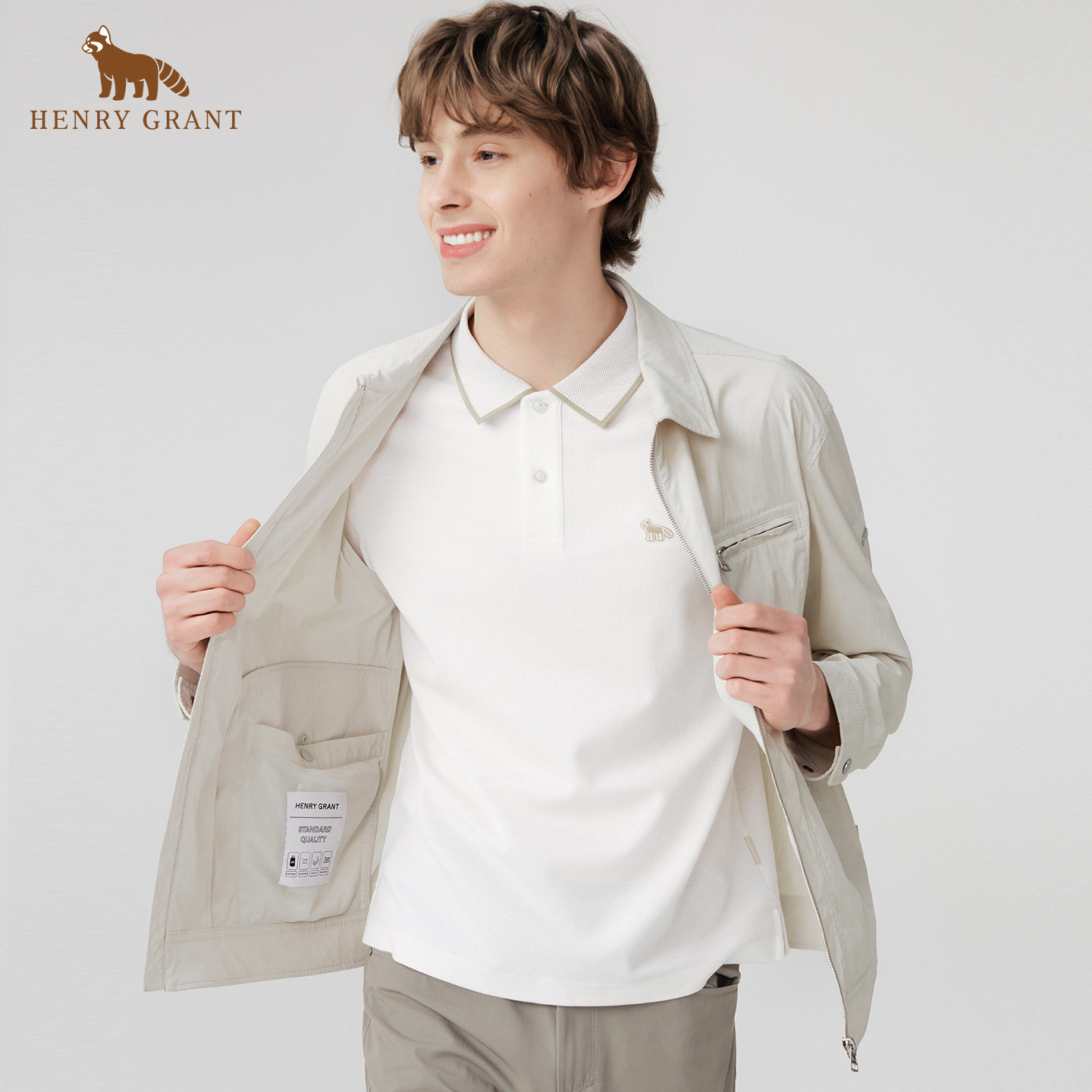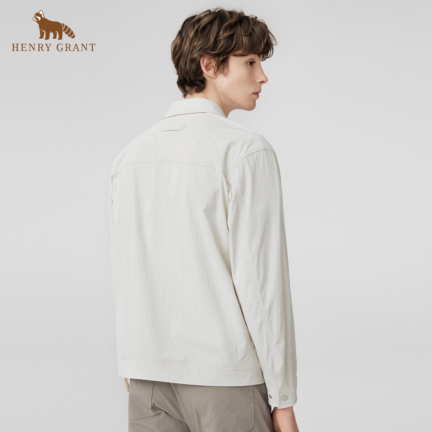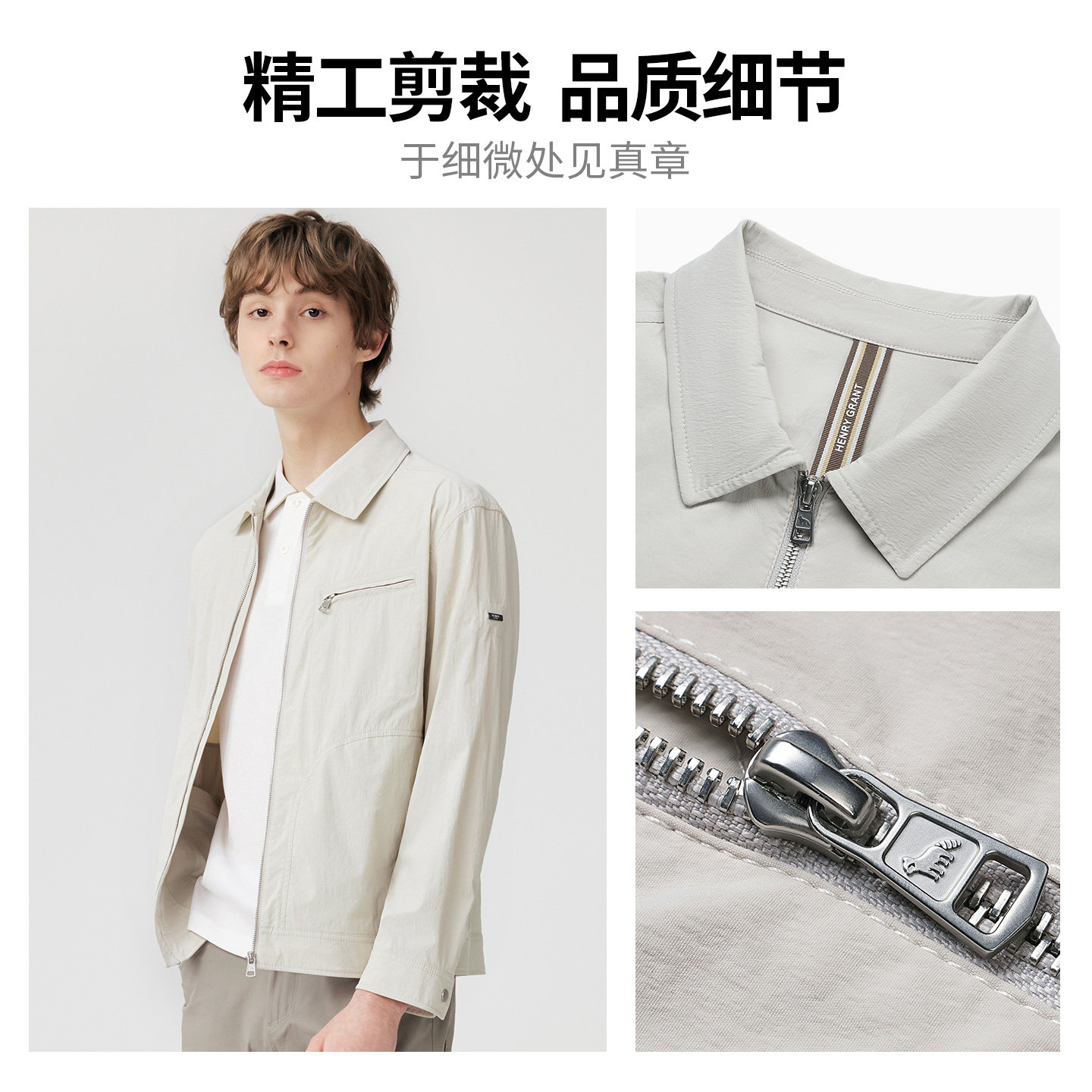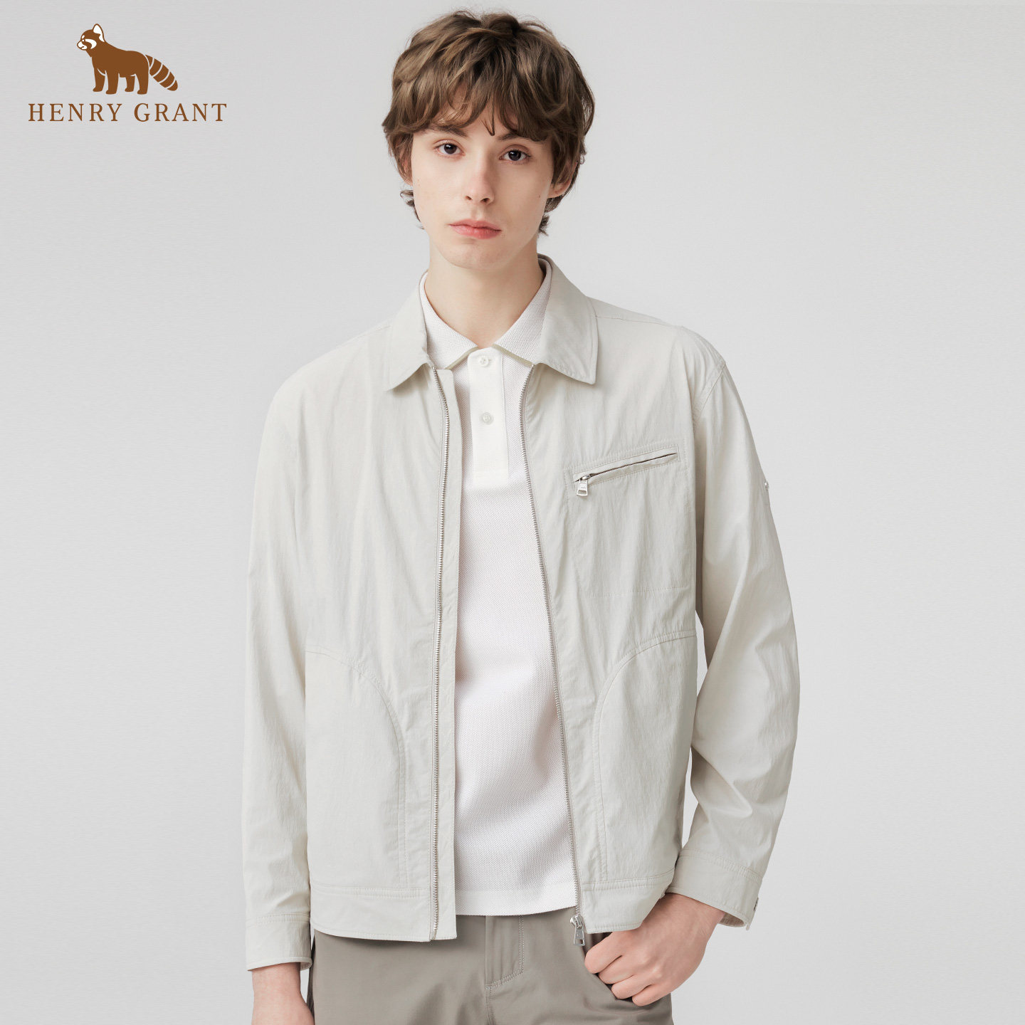 亨利格兰微廓翻领夹克男士2026春季通勤休闲百搭微皱工装外套上衣