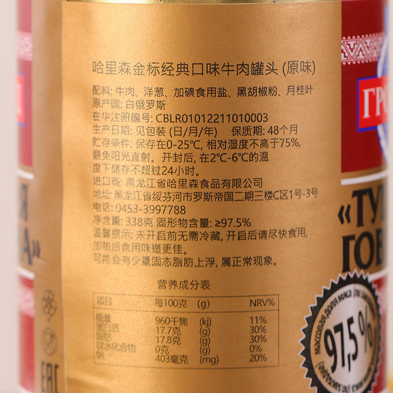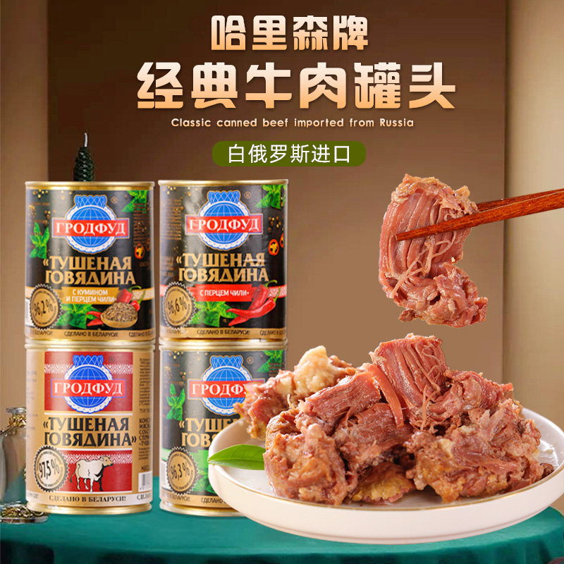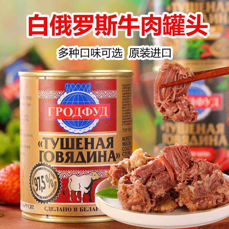 白俄罗斯进口牛肉罐头即食大块肉无淀粉速食下酒菜红烧午餐肉火腿