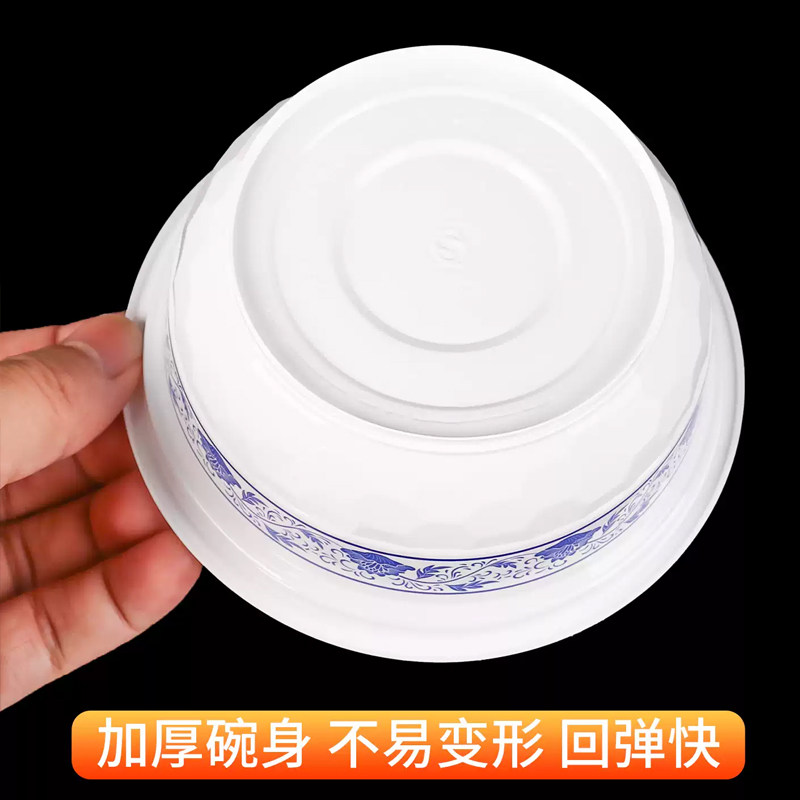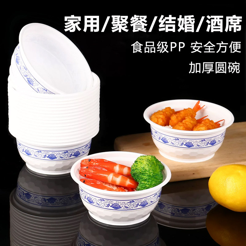 一次性青花瓷碗外卖流水席塑料专用摆摊路边摊打包餐盒高温无异味