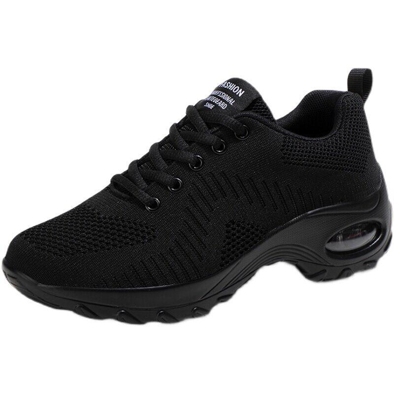欧伦啄木鸟春夏女鞋黑色跑步运动鞋网面休闲鞋气垫旅游鞋防滑厚底