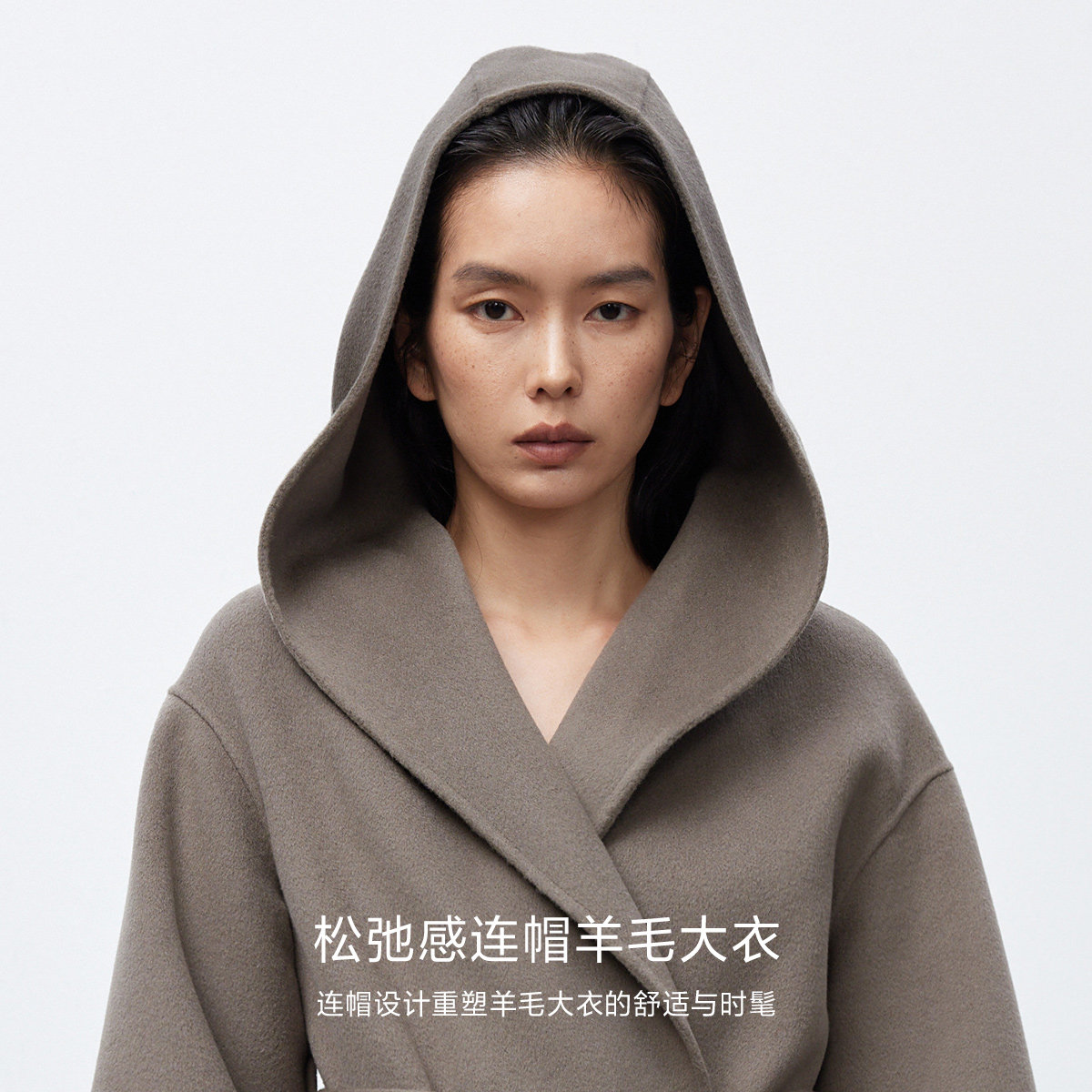 连帽羊毛大衣,实用大容量贴袋