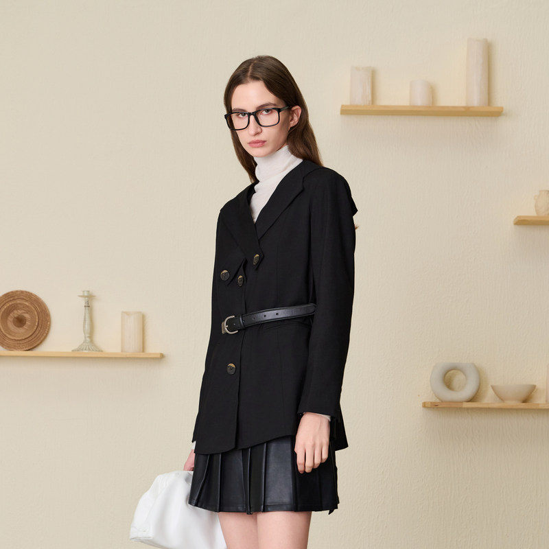 【含腰带收腰西装】MSLAN春季气质港风精英黑色修身外套MEAA2514