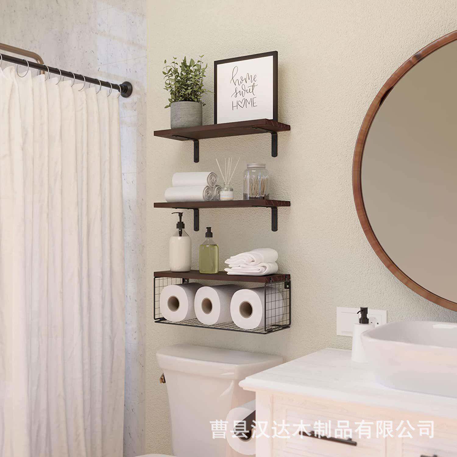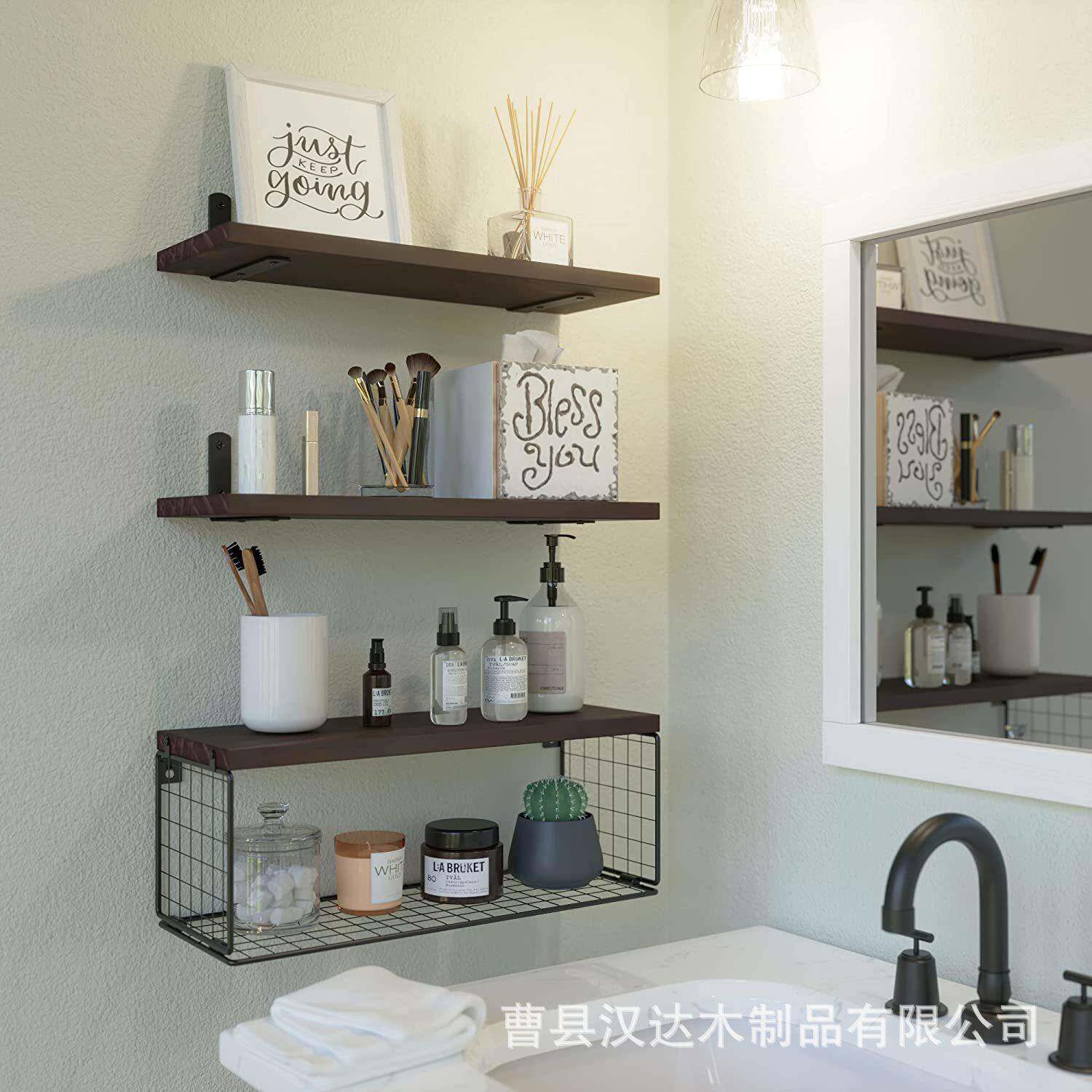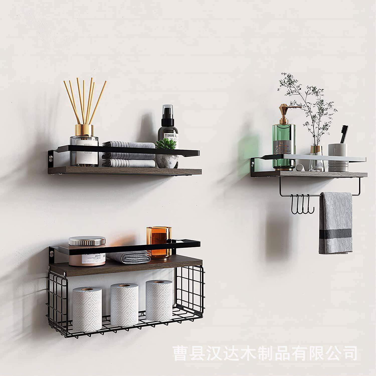 厨房收纳壁挂式调味料铁艺实木墙壁隔板墙上免打孔杯子挂钩置物架