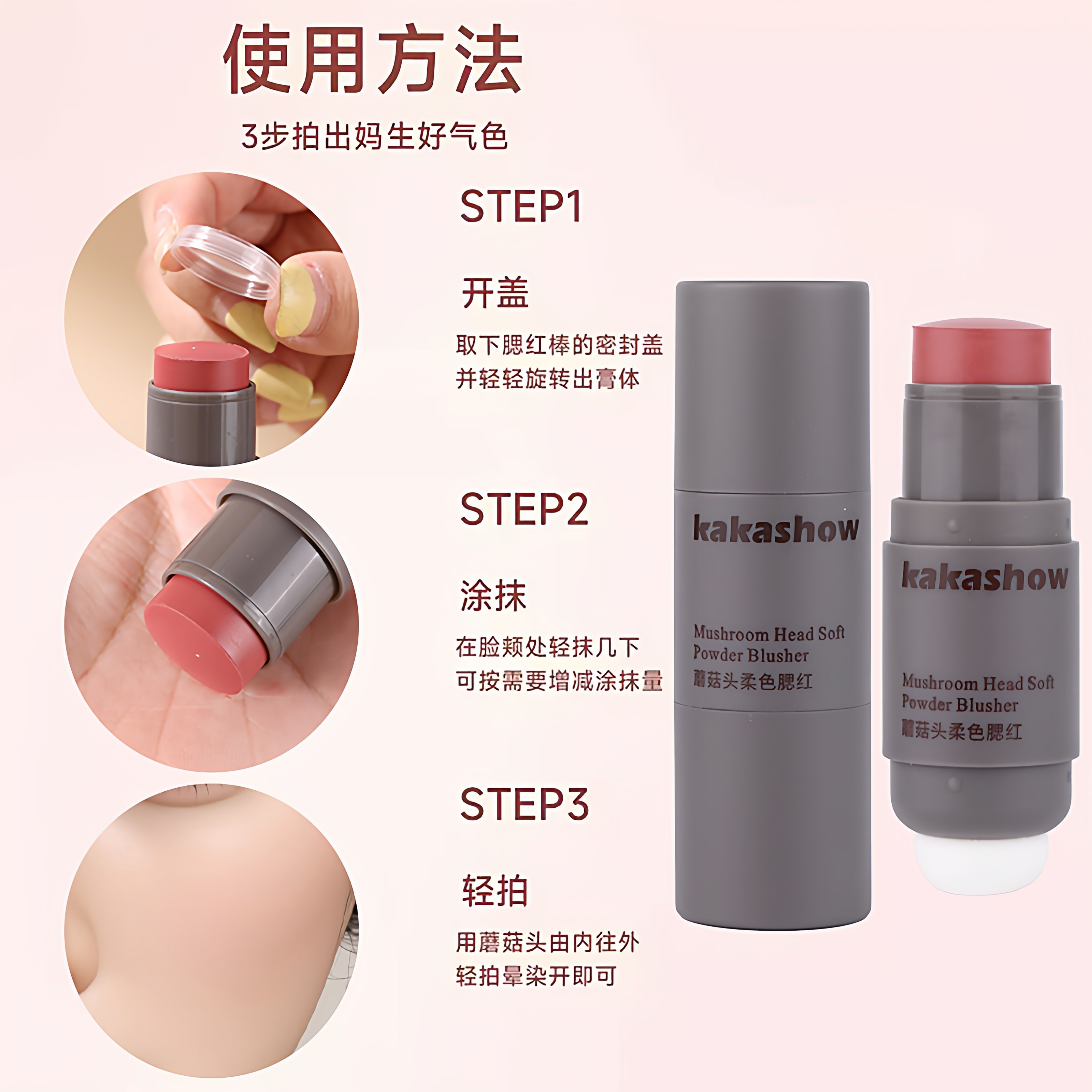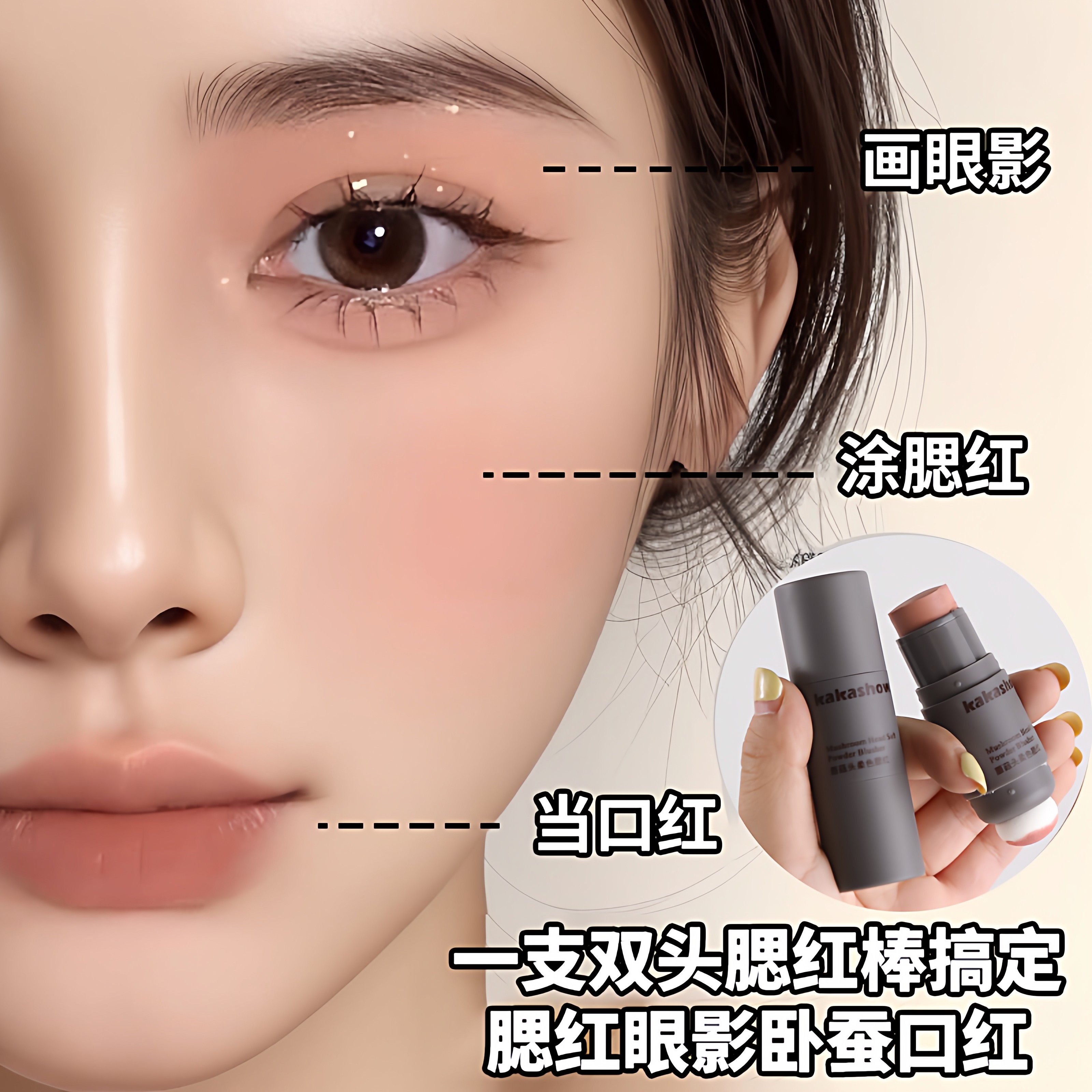 蘑菇头腮红2025新款爆款多功能单色懒人腮红棒双头腮红膏