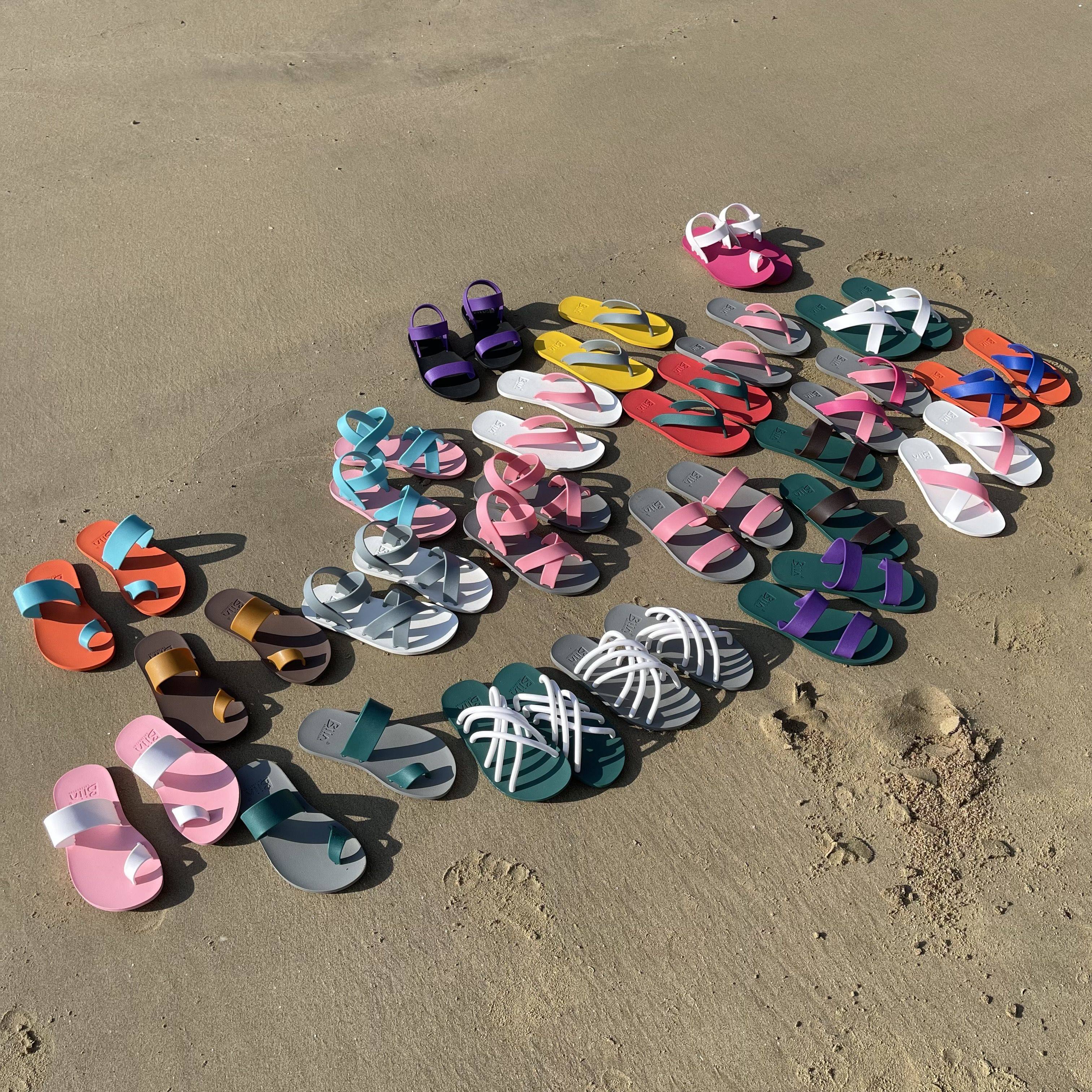 泰国进口橡胶夏季百搭时尚休闲沙滩度假防滑透气女士平底一字凉鞋