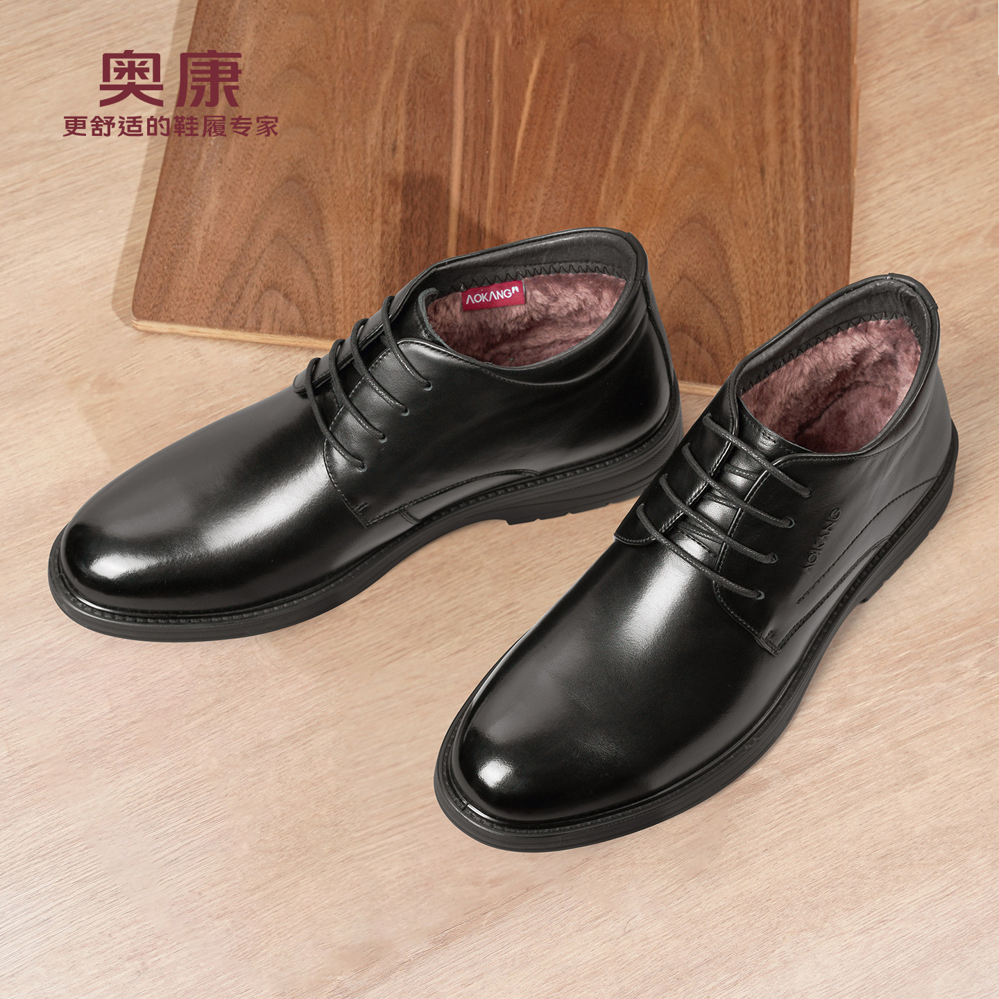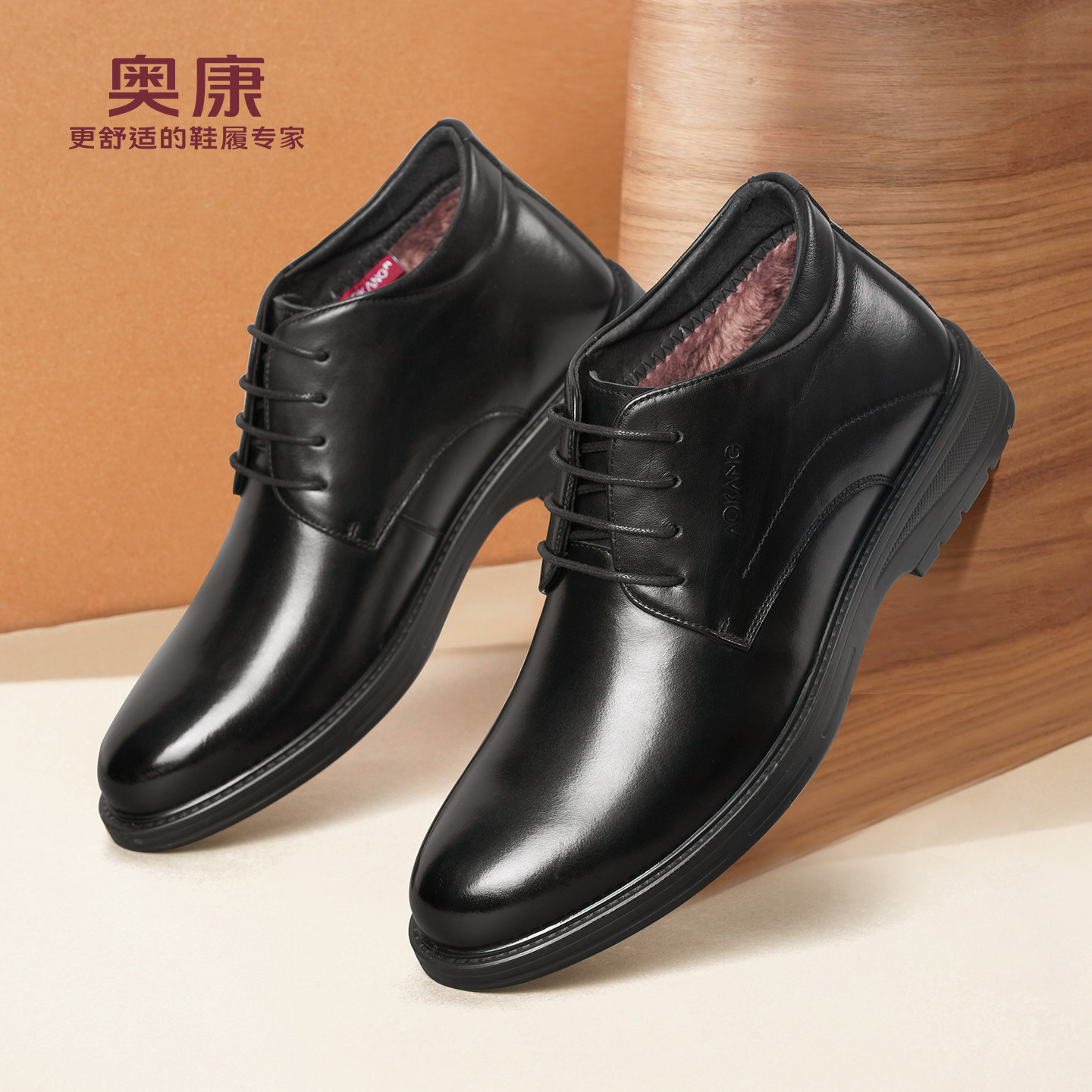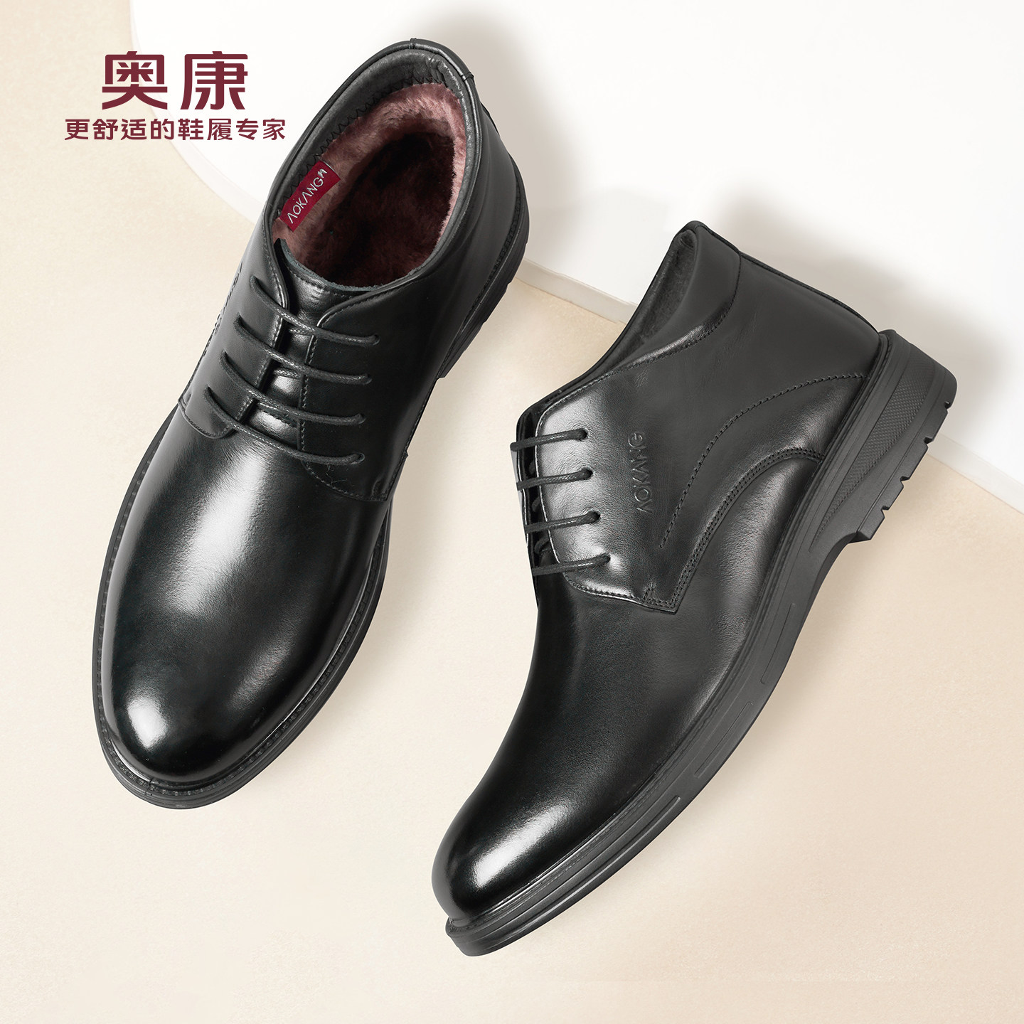 奥康 男鞋冬季加绒保暖高帮真皮休闲爸爸棉鞋男士皮鞋加厚皮鞋L