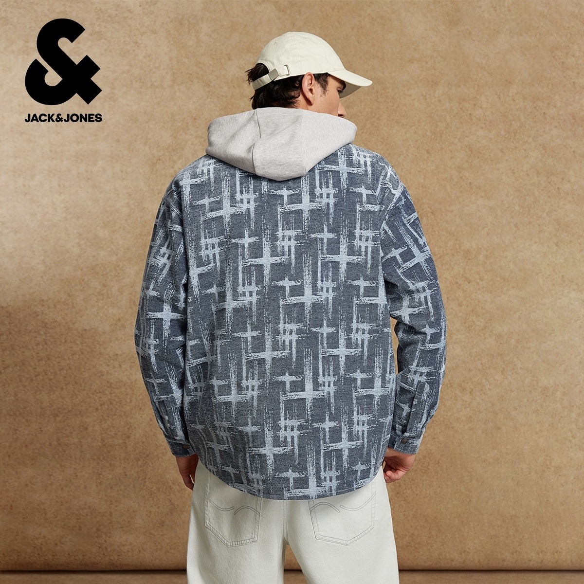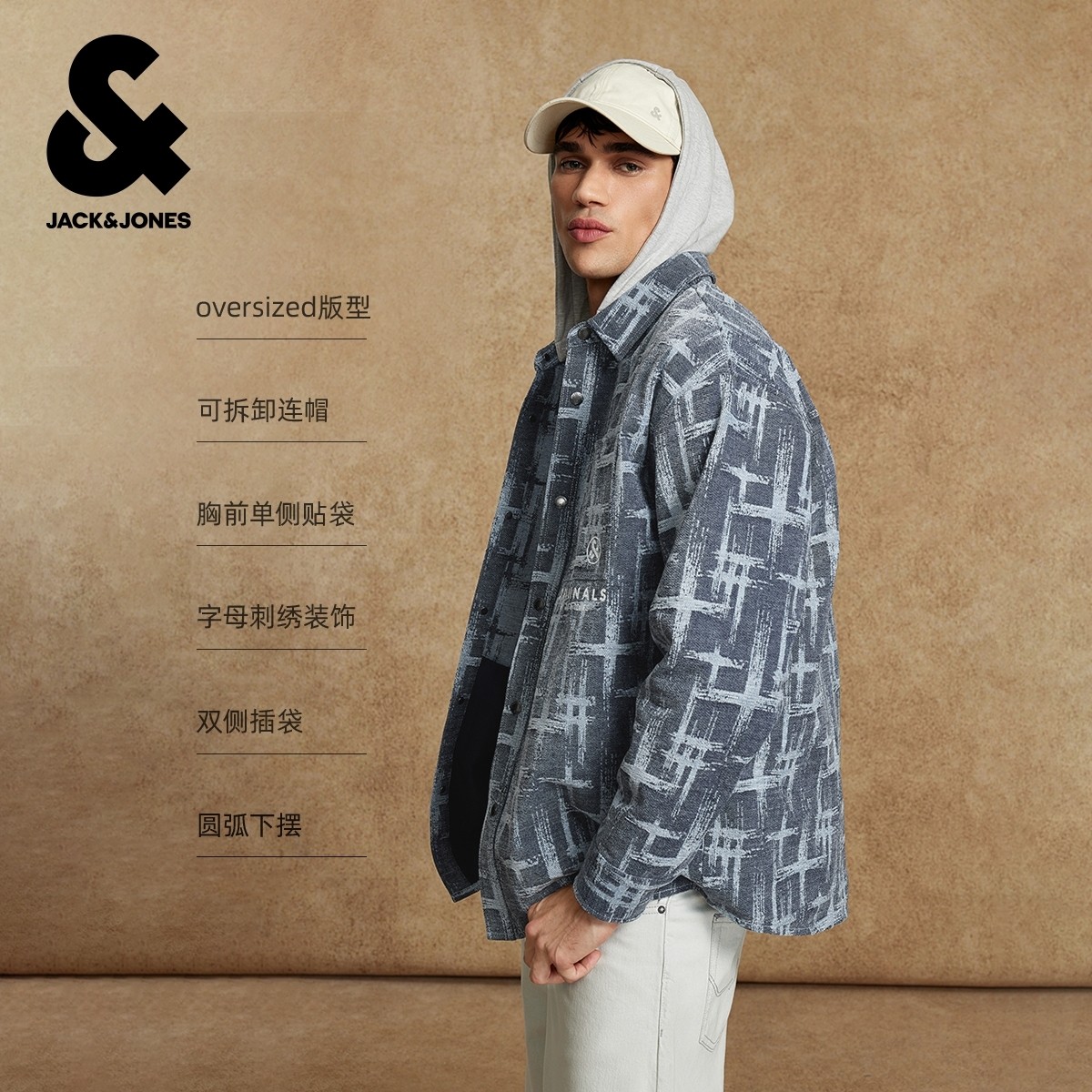 杰克琼斯2025男装冬季衬衫可拆卸连帽字母刺绣时尚潮流外套