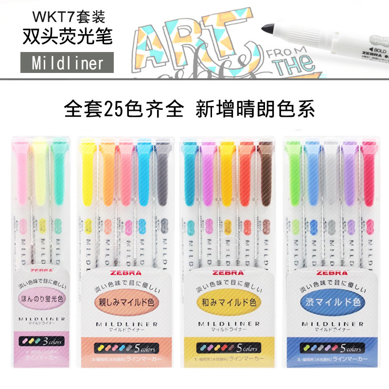 限定款哆啦A梦 日本ZEBRA斑马荧光套装双头荧光笔Mildliner标记笔