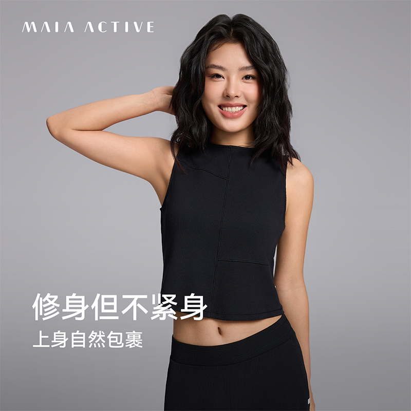 棉罗纹合身背心休闲日常运动女士瑜伽上衣MAIAACTIVE 62TK11