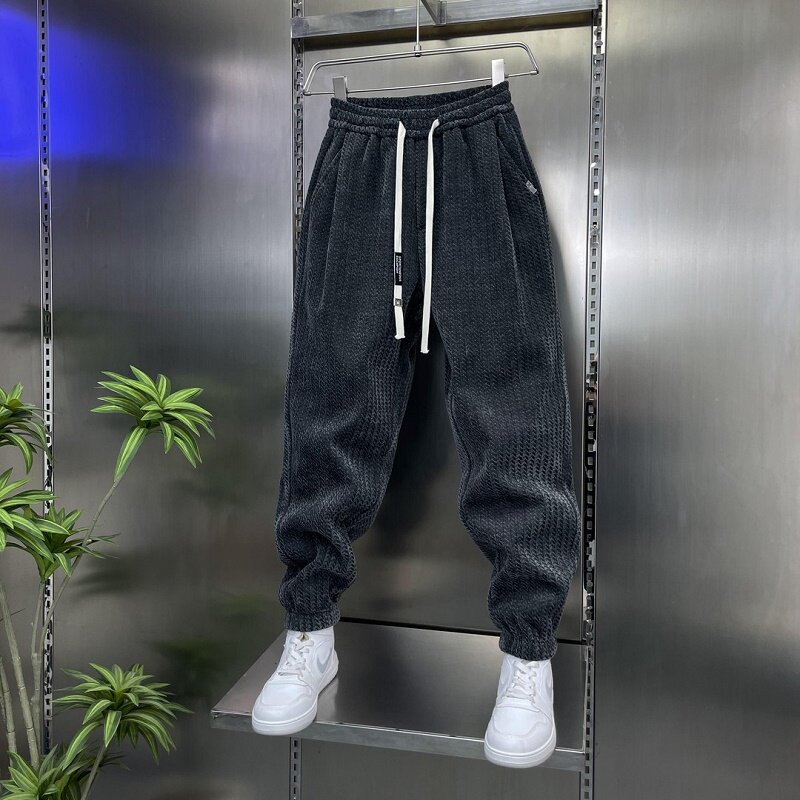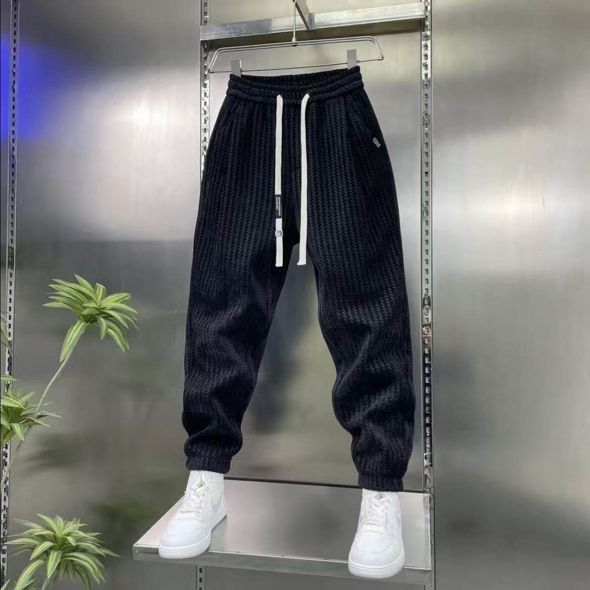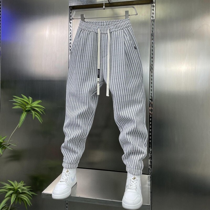 2026春秋新款加厚男士宽松休闲潮流束脚裤男裤休闲裤小脚裤子条纹