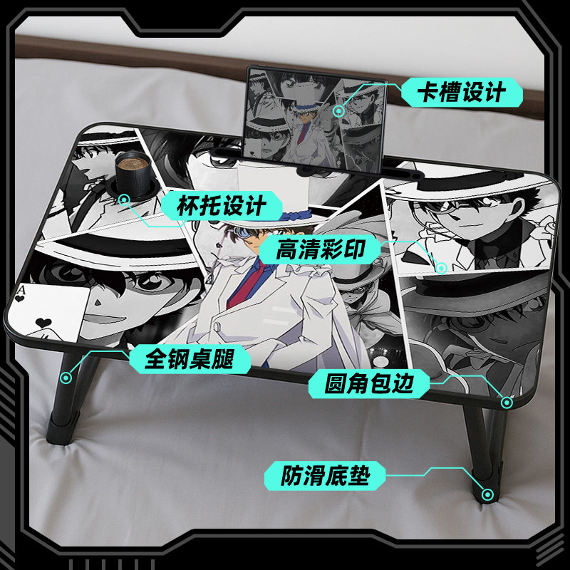 炫酷怪盗基德床上折叠小桌子家用学习写作业阅读书桌寝室上下铺游戏电脑桌免安装可折叠懒人桌可定制