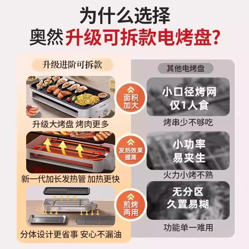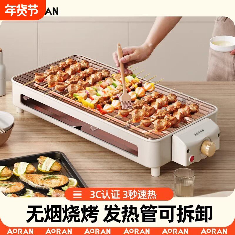 奥然电烧烤炉家用室内烧烤架电烤盘炉子烤肉机烤串多功能电烤锅
