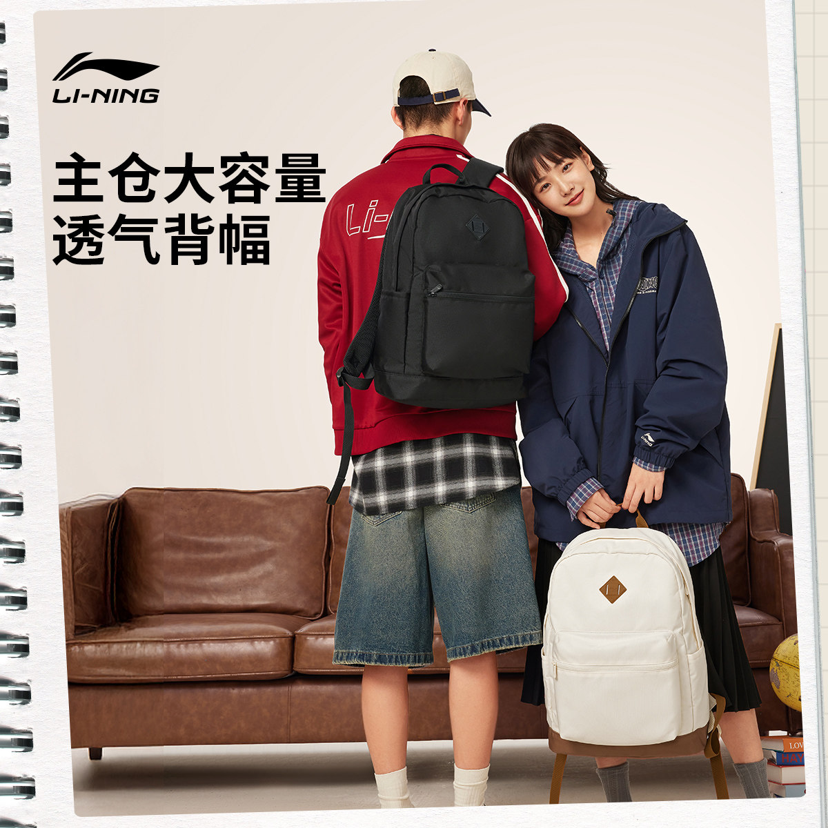 李宁书包男女2026新款官方正品大学生高级感通勤背包休闲双肩包