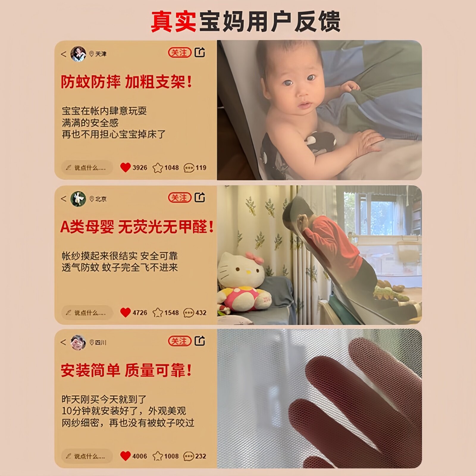 蚊帐防摔全底婴儿家用2026年新款卧室全罩式免安装儿童防止掉床型