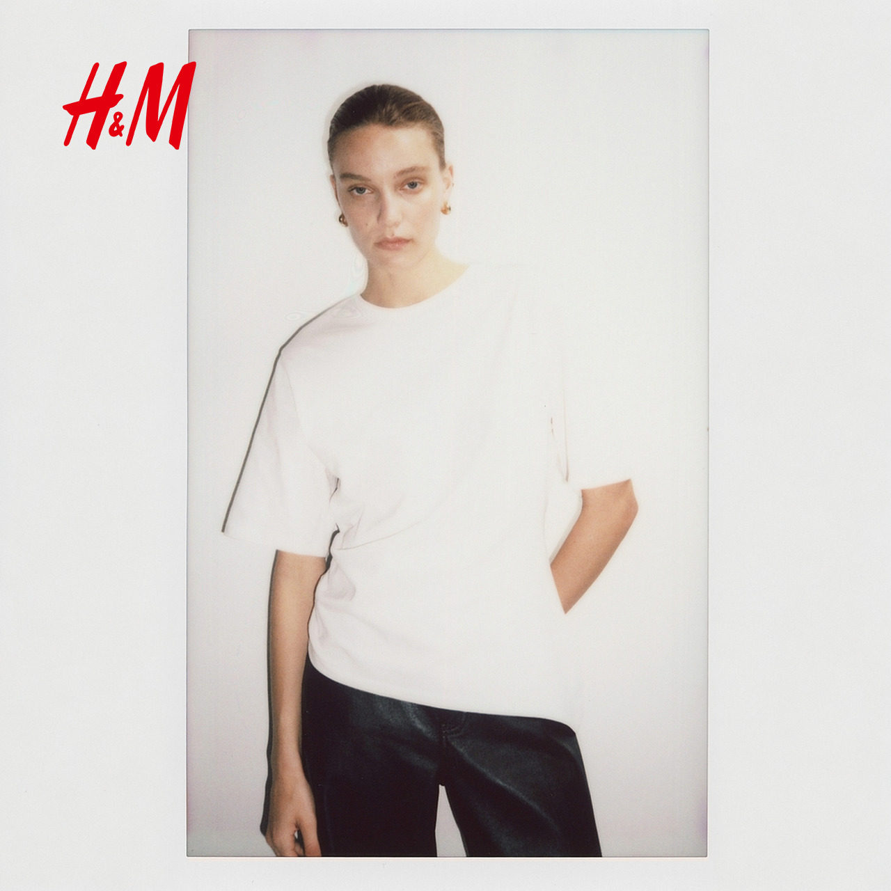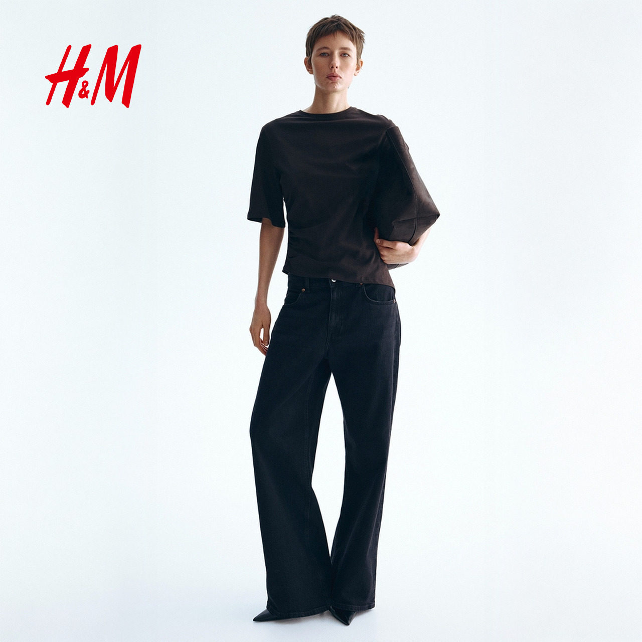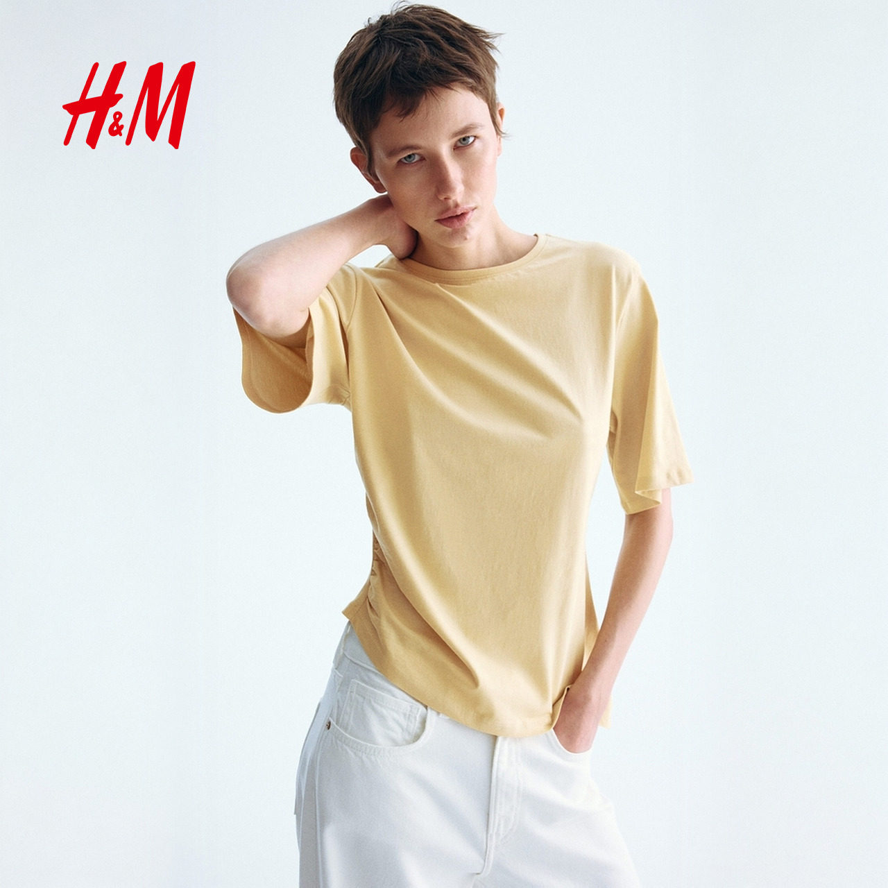 HM女装T恤2026春季新款掐腰设计感休闲垂坠垂褶短袖上衣1330265