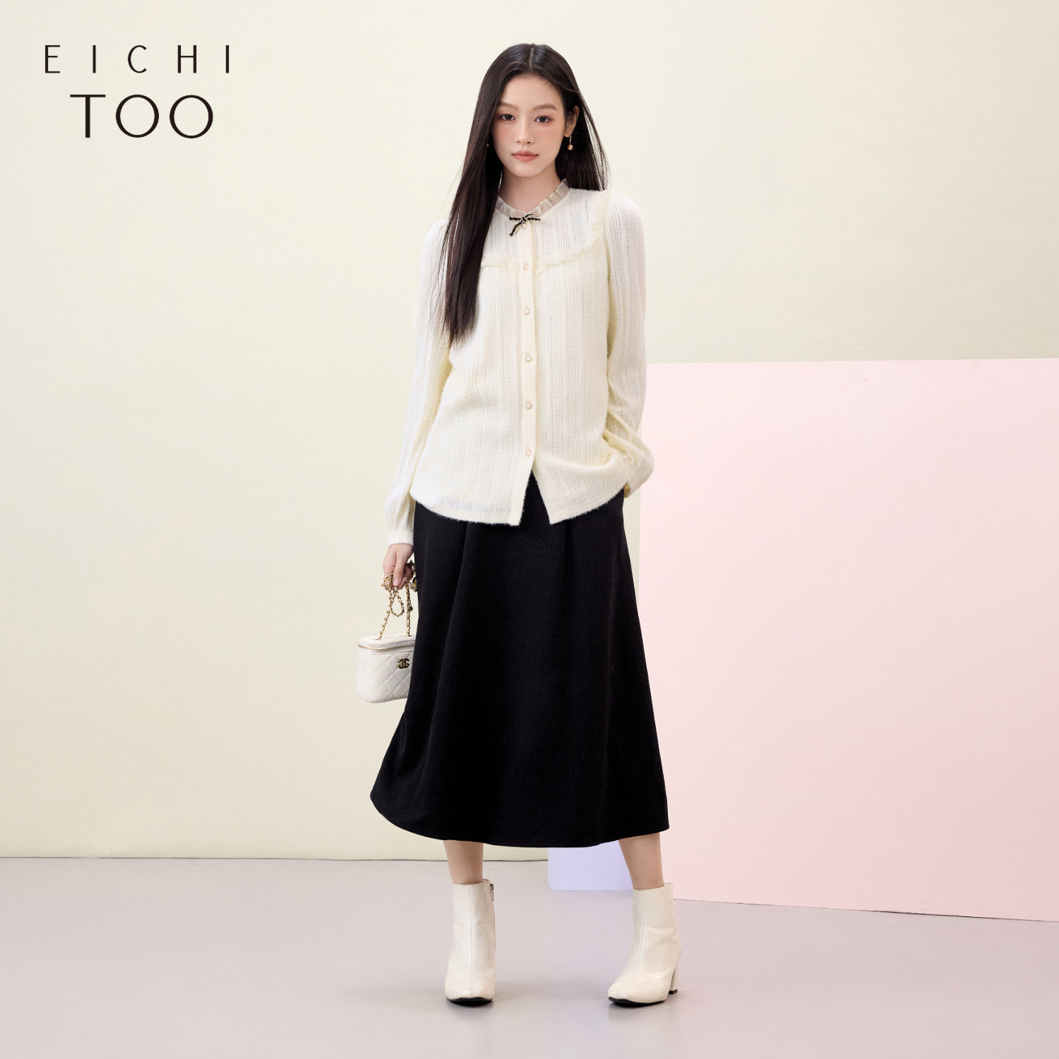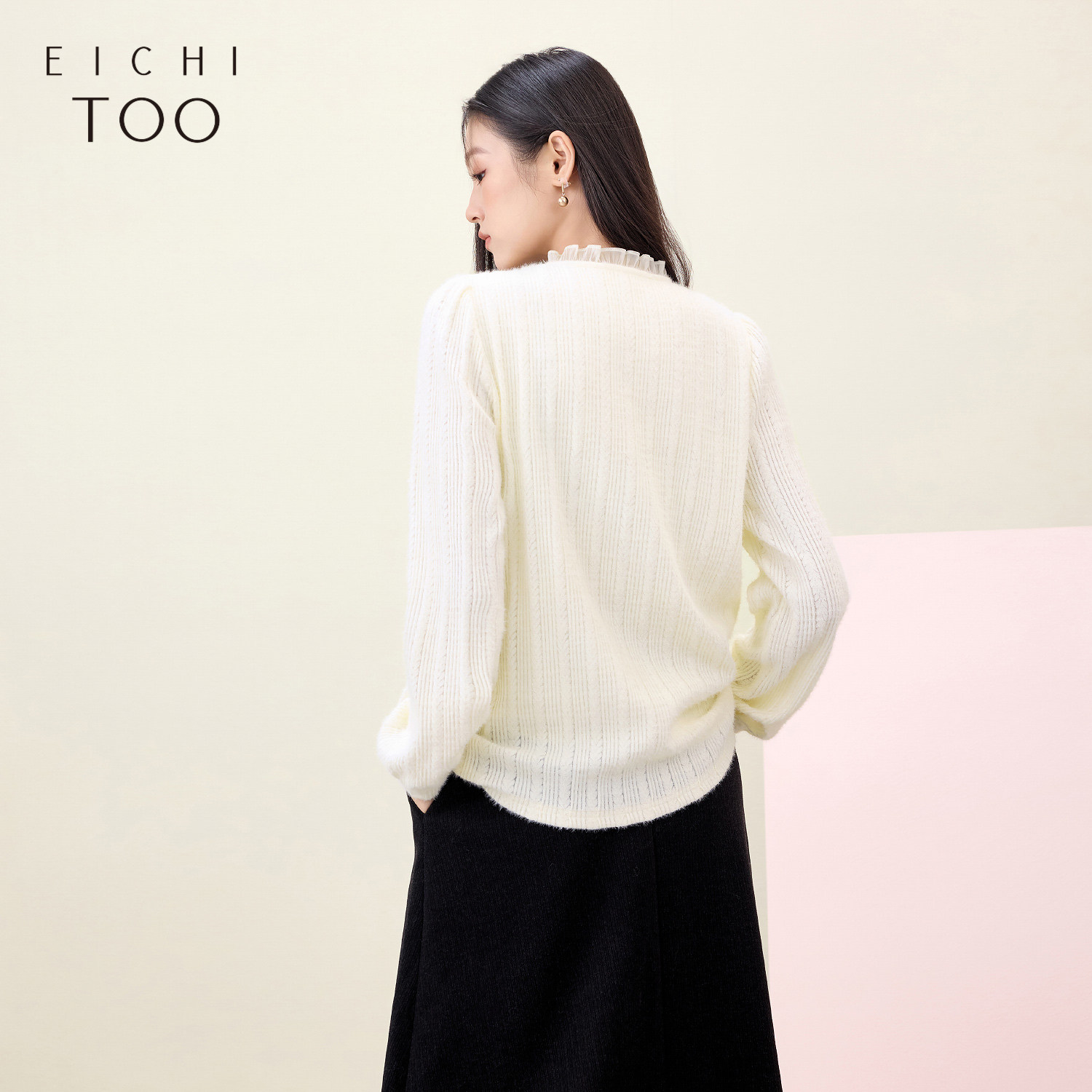 爱居兔磨毛蕾丝打底衫女冬季新款优雅时尚休闲长袖针织衫开衫