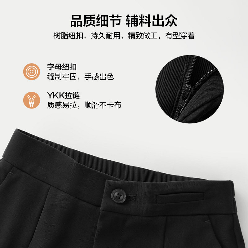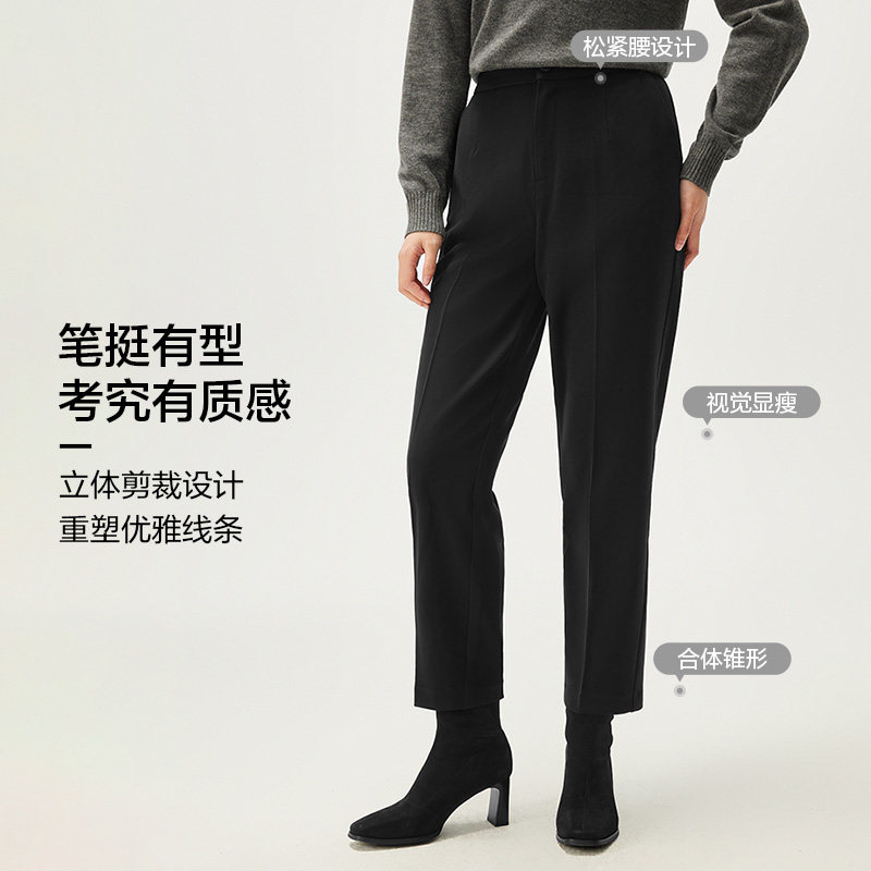 HLA/海澜之家商务黑色松紧腰西裤秋季新款职业显瘦锥形九分裤女装