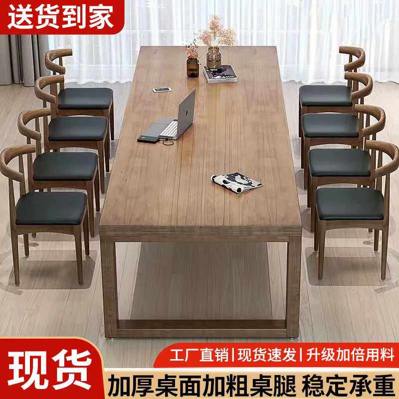 欧式实木桌大板桌办公桌会议桌长方形洽谈桌简约书桌现代长条餐桌