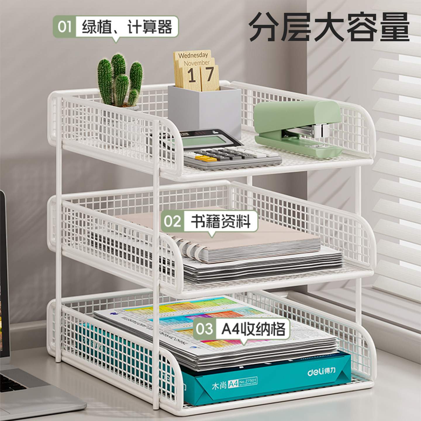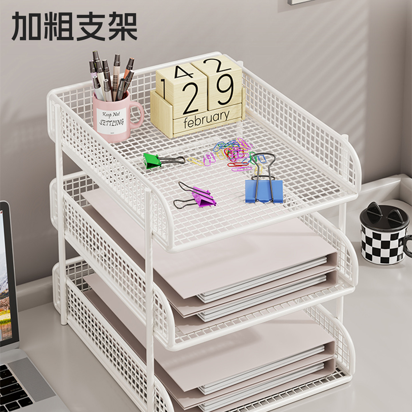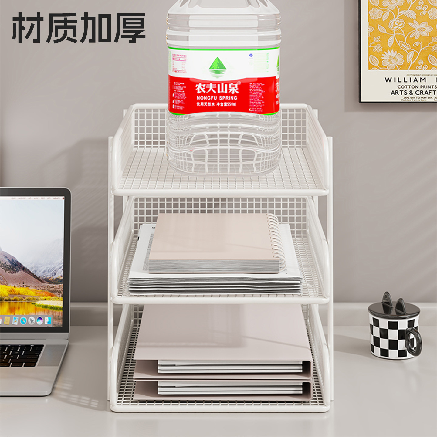 办公桌收纳置物架文件收纳盒办公用品文件架桌面书架多层大容量文件框文件夹A4纸资料档案整理架金属书立架