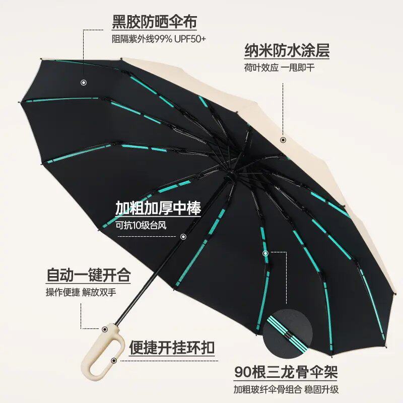 24骨全自动雨伞女晴雨加固折叠抗风男遮太阳伞防晒紫外线加大号厚