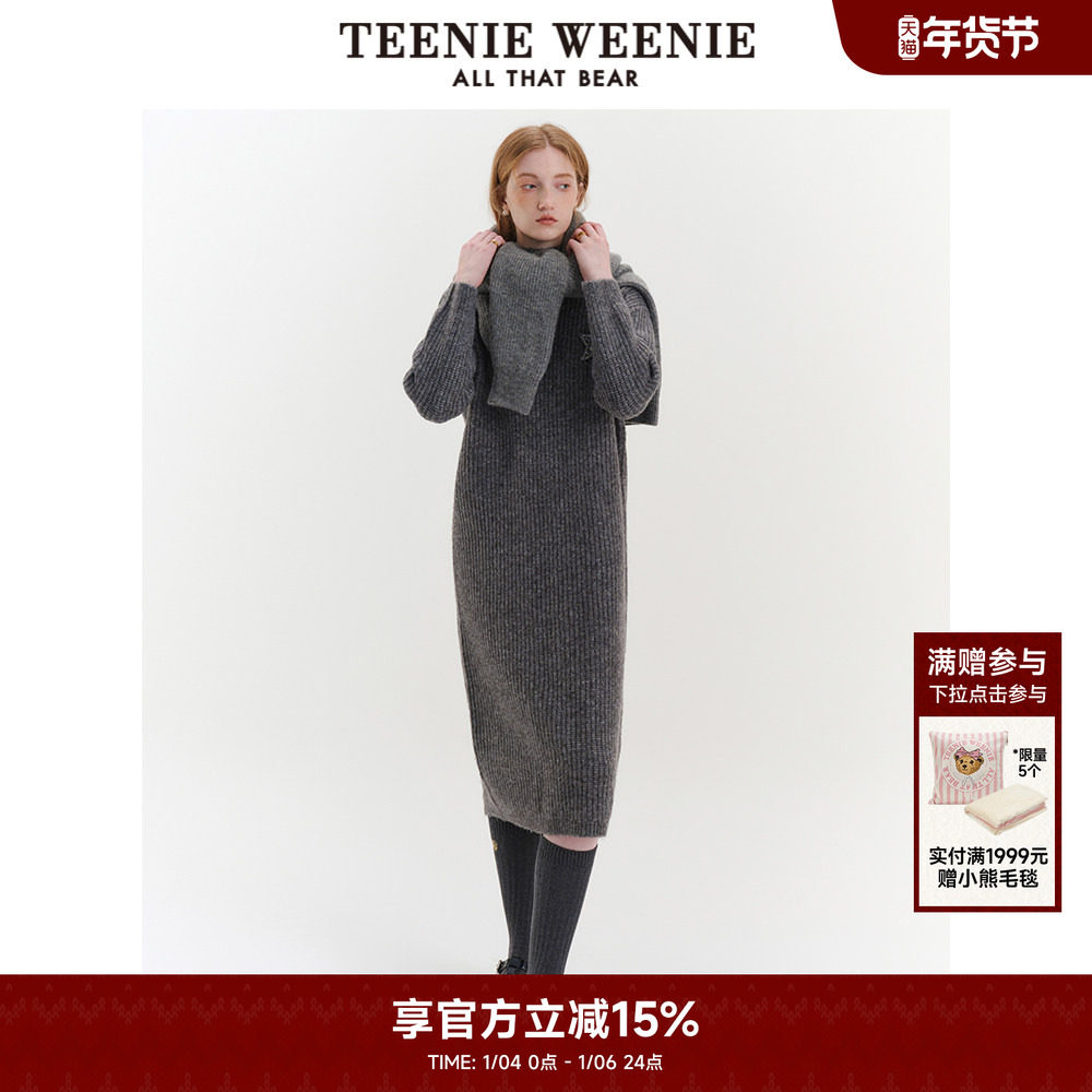 TeenieWeenie小熊奥莱春季时尚舒适宽松长款针织连衣裙保暖女