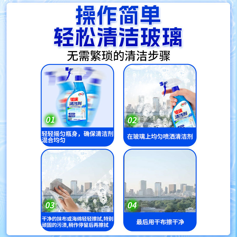 玻璃清洁剂保洁专用神器擦玻璃水家用擦窗户强力去污除垢清洗水垢