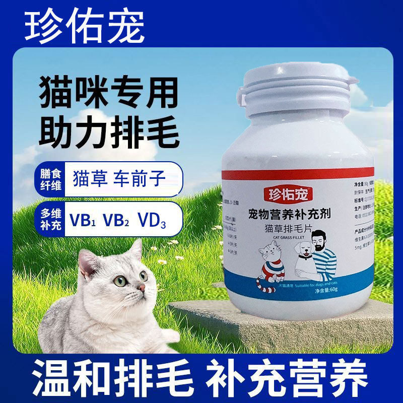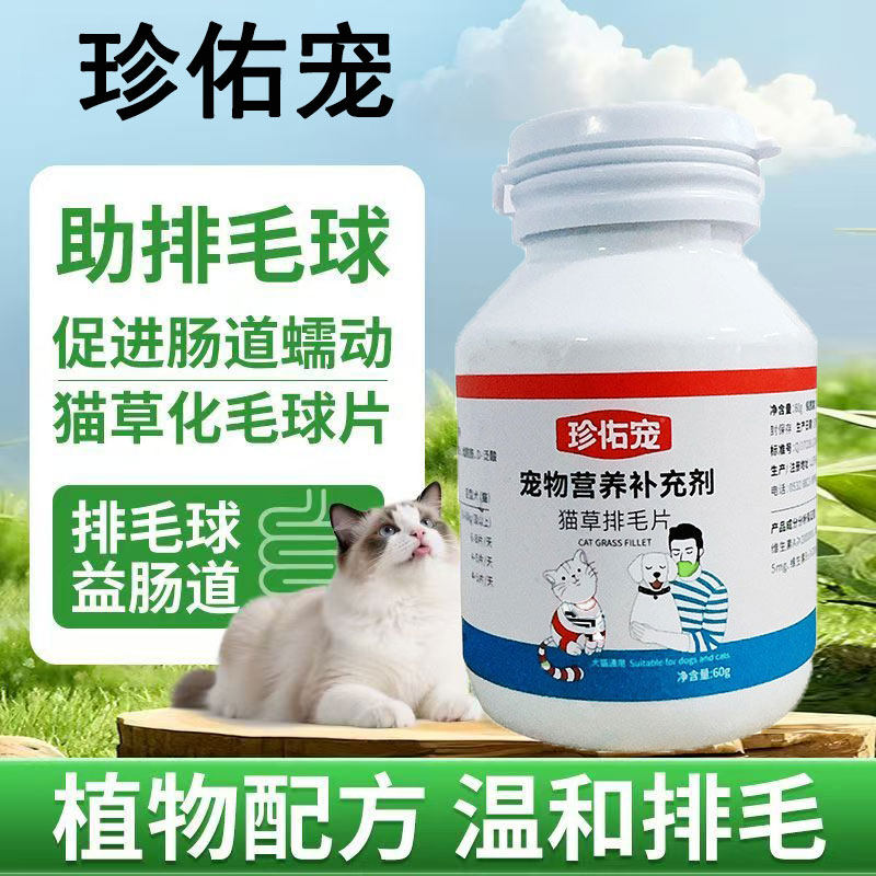 猫草化毛球片猫咪专用排毛去毛球化毛膏调理肠胃温和吐毛球车前子
