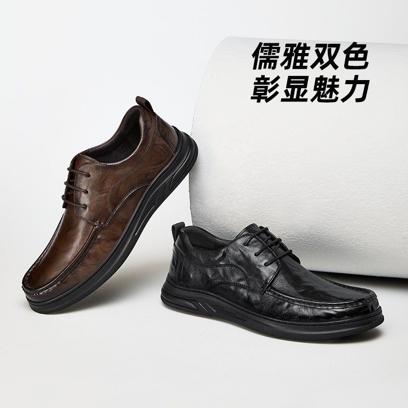 【小牛皮】青润chioryn袋鼠鞋男黑色真皮增高厚底休闲通勤风皮鞋