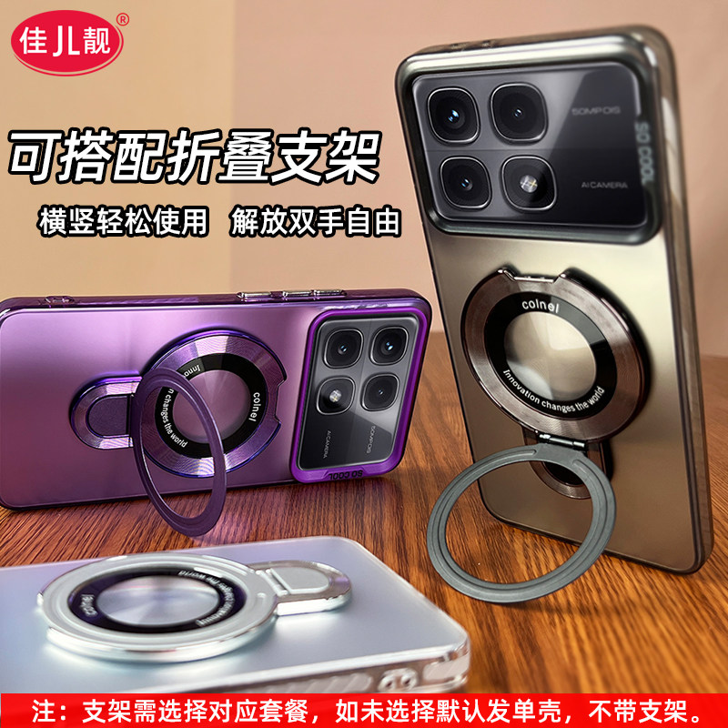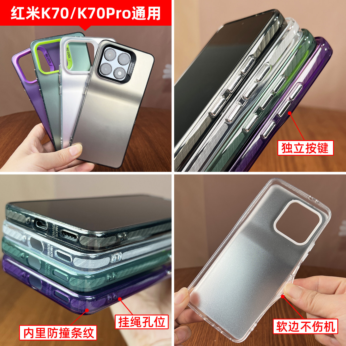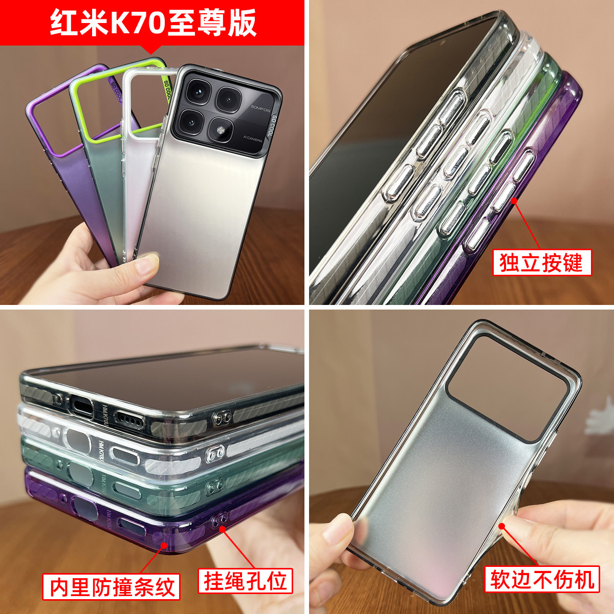 适用于红米k70镜头大孔手机壳k70pro新款保护套k70至尊版高级感k70e镭射支架k70ultra外壳5G全包软边防摔彩银