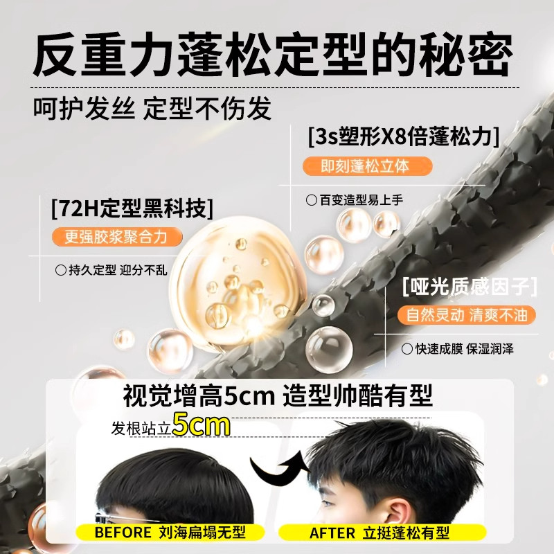 杰威尔发胶定型喷雾男士造型哑光发泥自然蓬松短头发背头造型神器
