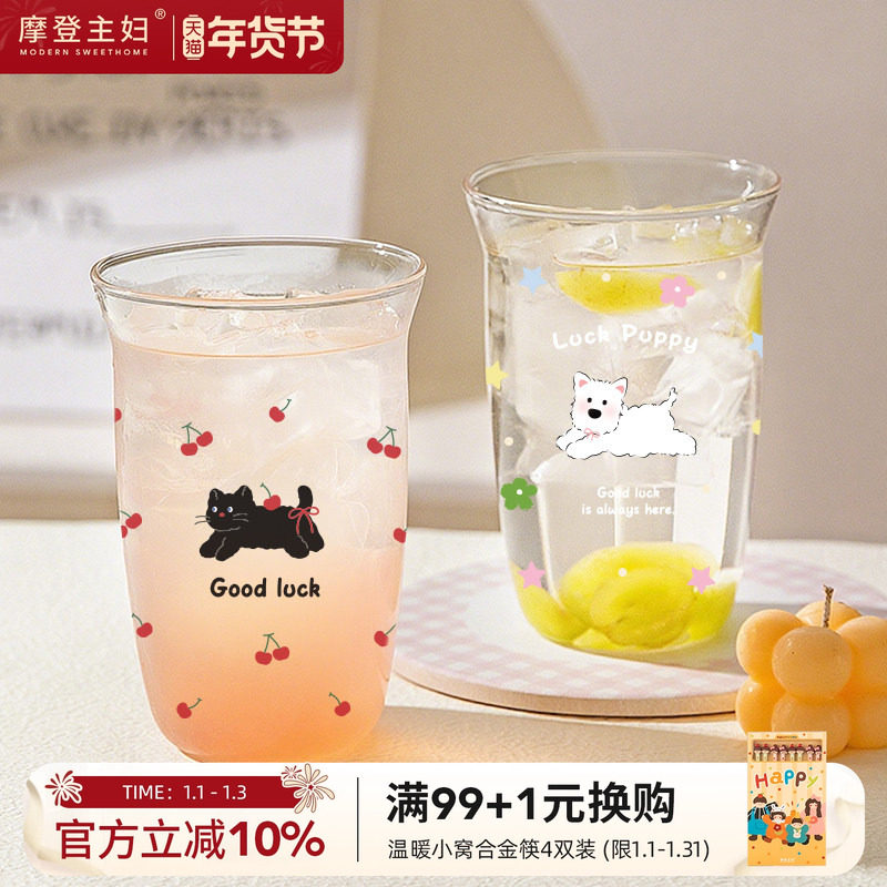 摩登主妇ins风高硼硅玻璃杯咖啡杯果汁杯子牛奶杯家用水杯啤酒杯