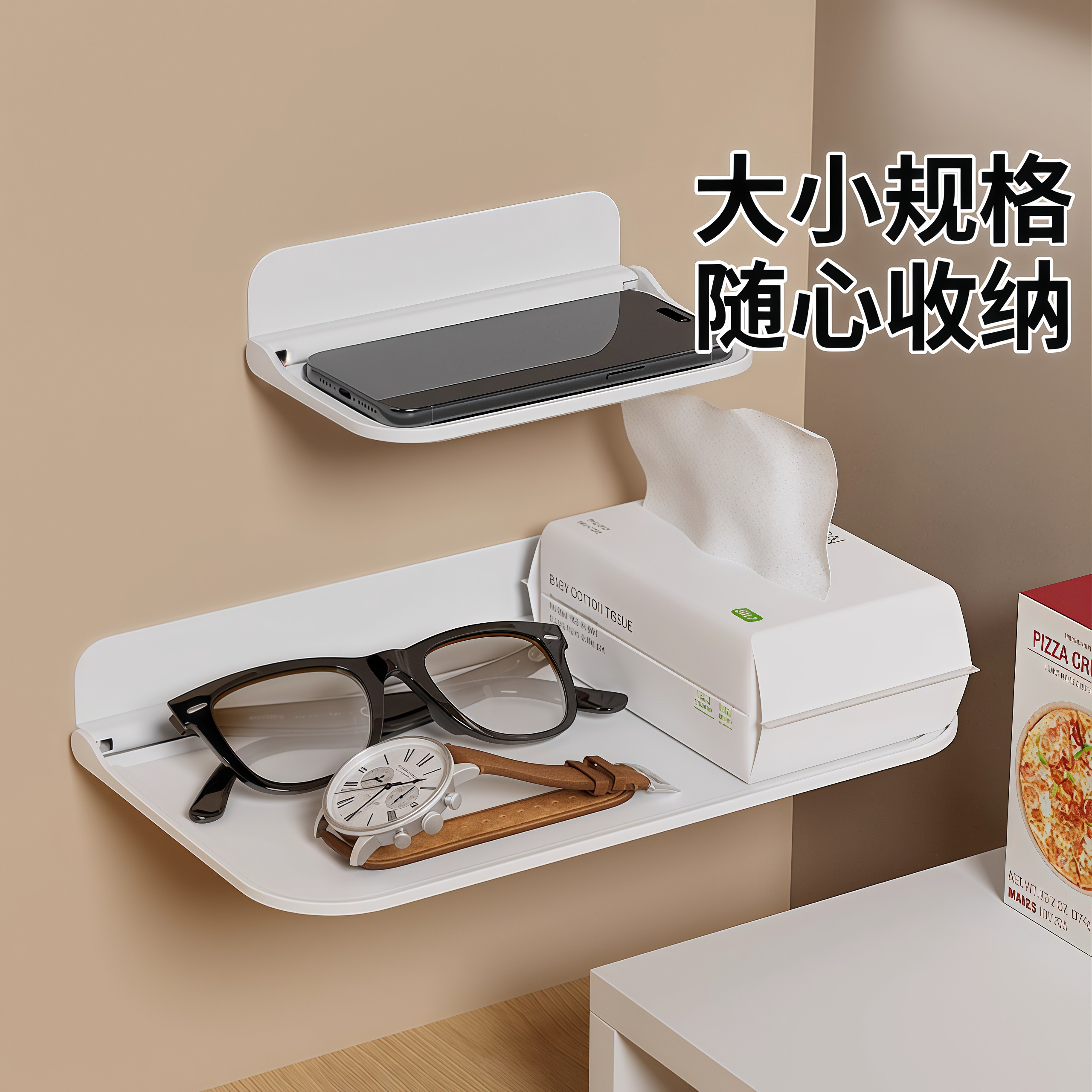 可折叠墙上置物架卫生间浴室宿舍床头边免打孔壁挂式收纳架壁挂架