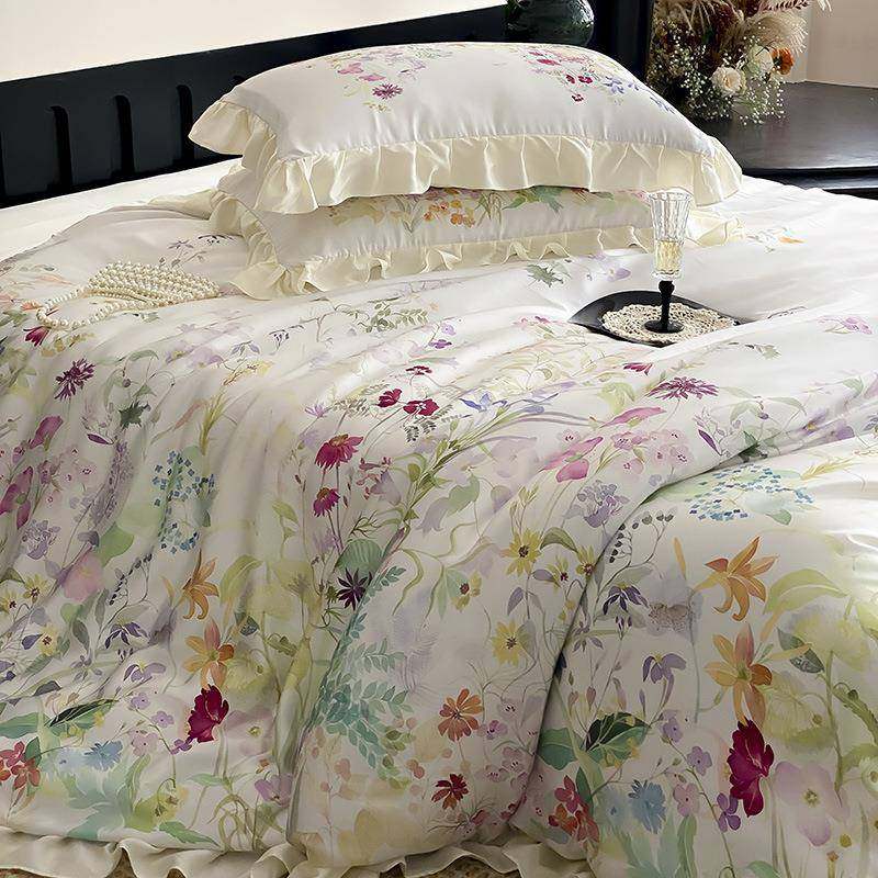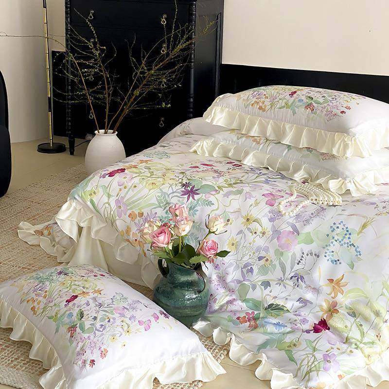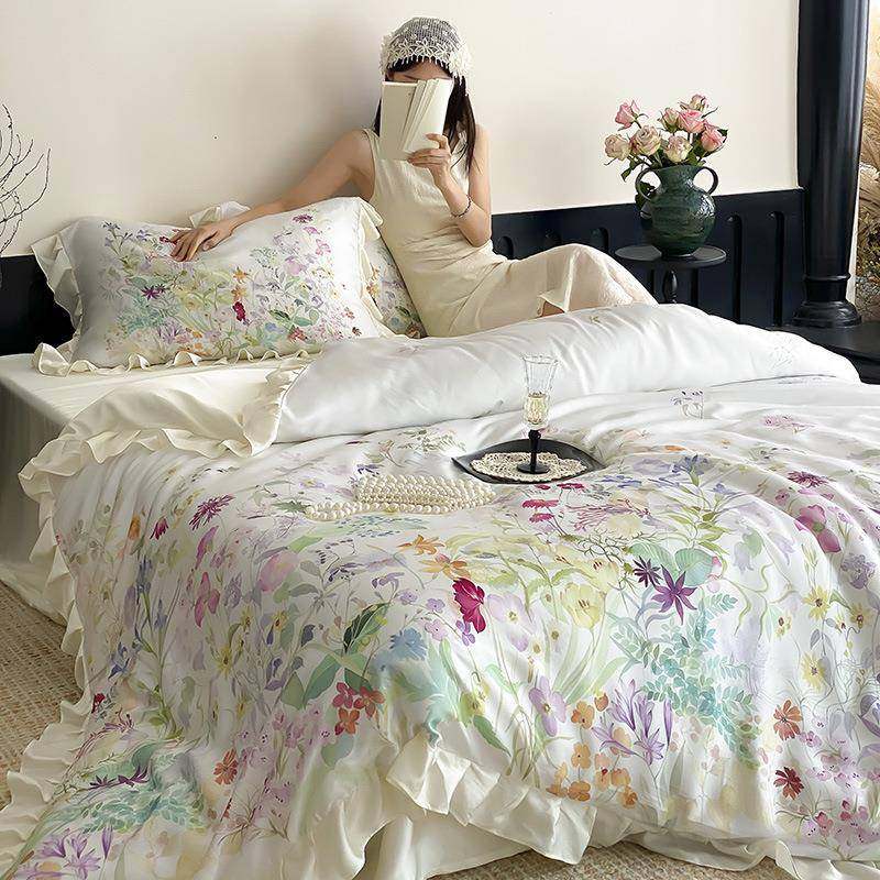 法式田园风100S兰精天丝四件套夏季冰丝凉感丝滑裸睡床单被套床品
