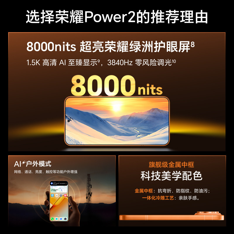 【官网】HONOR/荣耀Power2 新品手机10080mAh青海湖电池 第二代荣耀鸿雁通信 天玑8500 Elite 正品官方旗舰店